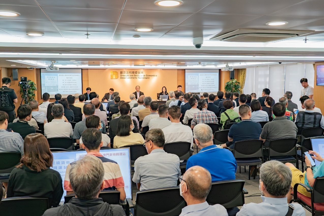 Dada a entrada em funcionamento do Posto de Transferência de Mercadorias Transfronteiriço de Macau da Ponte Hong Kong-Zhuhai-Macau (Posto de Transferência) no dia 8 de Agosto de 2023, a Direcção dos Serviços de Economia e Desenvolvimento Tecnológico (DSEDT), juntamente com os Serviços de Alfândega da RAEM (SA), a Direcção dos Serviços para os Assuntos de Tráfego (DSAT) e a empresa operadora do Posto de Transferência, realizou, hoje (dia 2), pelas 11h00, na sala de reunião da DSEDT, sita no 7.º andar do Edf. Banco Luso Internacional, a Sessão de Esclarecimento Interdepartamental sobre o Posto de Transferência de Mercadorias Transfronteiriço de Macau da Ponte Hong Kong-Zhuhai-Macau, que contou com a presença de cerca de 120 representantes do sector de logística.
