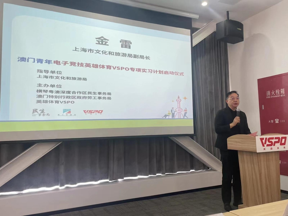 O Plano de estágio específico de desporto electrónico para os jovens de Macau (Plano), realizado pela Direcção dos Serviços para os Assuntos Laborais (DSAL) com a colaboração da Direcção dos Serviços de Assuntos de Subsistência da Zona de Cooperação Aprofundada entre Guangdong e Macau em Hengqin (DSAS) e a Companhia de gestão de desporto Herói, Limitada VSPO (Desporto Herói), com o apoio e orientação dos Serviços de Cultura e Turismo do Município de Xangai (SCT), teve a cerimónia de início do estágio realizada com sucesso em 7 de Agosto, no Município de Xangai. O presente Plano contou com a participação de 18 jovens qualificados de Macau, tendo a DSAL, DSAS, SCT e o Desporto Herói destacados dirigentes e convidados para presenciarem na cerimónia em questão, dando início ao Plano com duração de doze semanas.