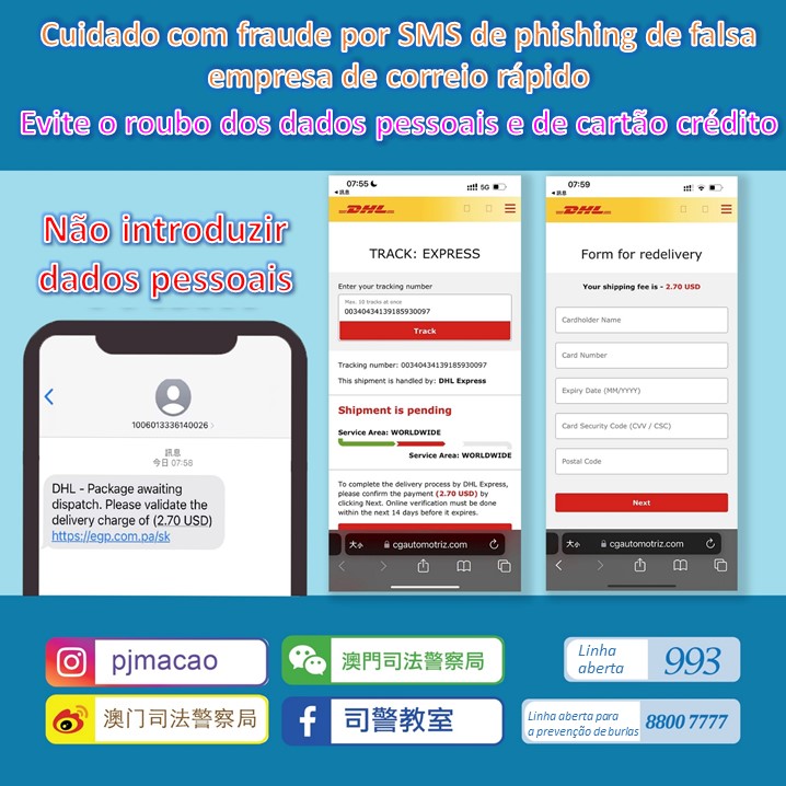 Nos últimos anos, têm vindo a ocorrer casos de fraude deste género e provocando prejuízo às vítimas. A PJ apela aos cidadãos para estarem atentos e evitarem dar azo para os criminosos poderem roubar os seus dados pessoais ou fraudar monetariamente. Devem sempre confirmar a veracidade do SMS através do canal oficial.