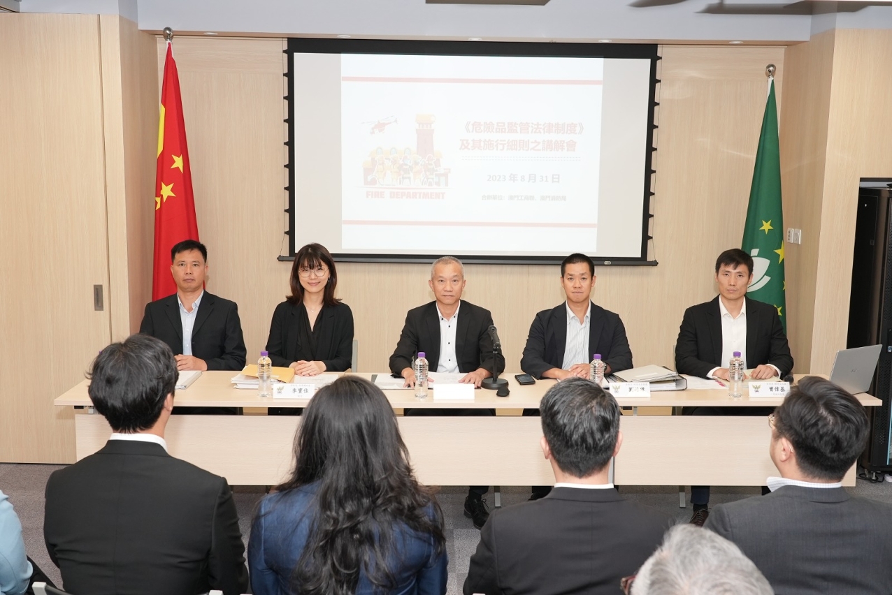 O Corpo de Bombeiros (CB) realizou, na tarde do dia 31 de Agosto, sessão de esclarecimento sobre o Regime jurídico do controlo de substâncias perigosas e as respectivas normas complementares em conjunto com a Associação Industrial e Comercial de Macau, que esclareceu essencialmente a entrada em vigor da Lei n.º 12/2022 (Regime jurídico do controlo de substâncias perigosas) e que explicou prioritariamente os conteúdos pertinentes à nova lei e ao sector profissional, incluindo a sua regulamentação principal e os respectivos despachos do Chefe do Executivo, os deveres dos utilizadores de substâncias perigosas, a categorização de substâncias perigosas, a quantidade de isenção de substâncias perigosas, entre outros, para que os sectores profissionais relevantes cumprissem melhor as respectivas responsabilidades e obrigações, criando um ambiente industrial e comercial mais seguro.