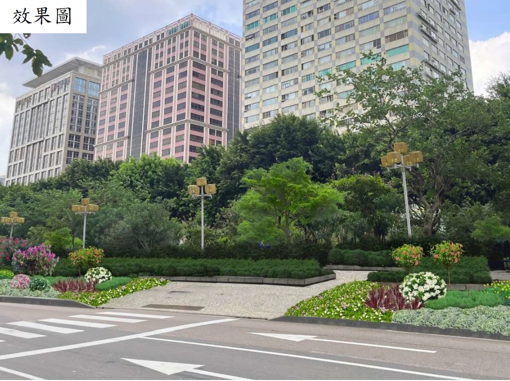 O passeio em redor do Parque é estreito em certas partes, os peões necessitam de contornar o passeio exterior do Parque para atravessar a rua, e os quatro acessos de entrada e saída do auto-silo subterrâneo do Parque ocupam parte do passeio exterior. Tudo isto não favorece a circulação de peões a longo prazo. Por outro lado, a diferença de nível no acesso ao Parque também dificulta a entrada e saída de cadeiras de rodas. A obra irá optimizar e manter o passeio no exterior do Parque, melhorando as linhas dinâmicas de circulação pedonal e a sua acessibilidade, para que os cidadãos possam atravessar a via cruzando directamente o Parque, no sentido de encurtar a distância percorrida pelos peões. As vedações metálicas periféricas do Parque serão removidas, eliminando a sensação de isolamento, e alargando a amplitude de visão do Parque. Os trabalhos irão também aperfeiçoar o ambiente de circulação livre de barreiras no passeio exterior do Parque. Em simultâneo, serão acrescentadas faixas verdes no passeio, enriquecendo os elementos verdes do Parque, embelezando a paisagem, e contribuindo também para a separação entre veículos e pessoas.