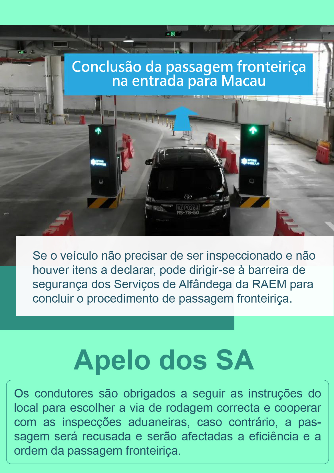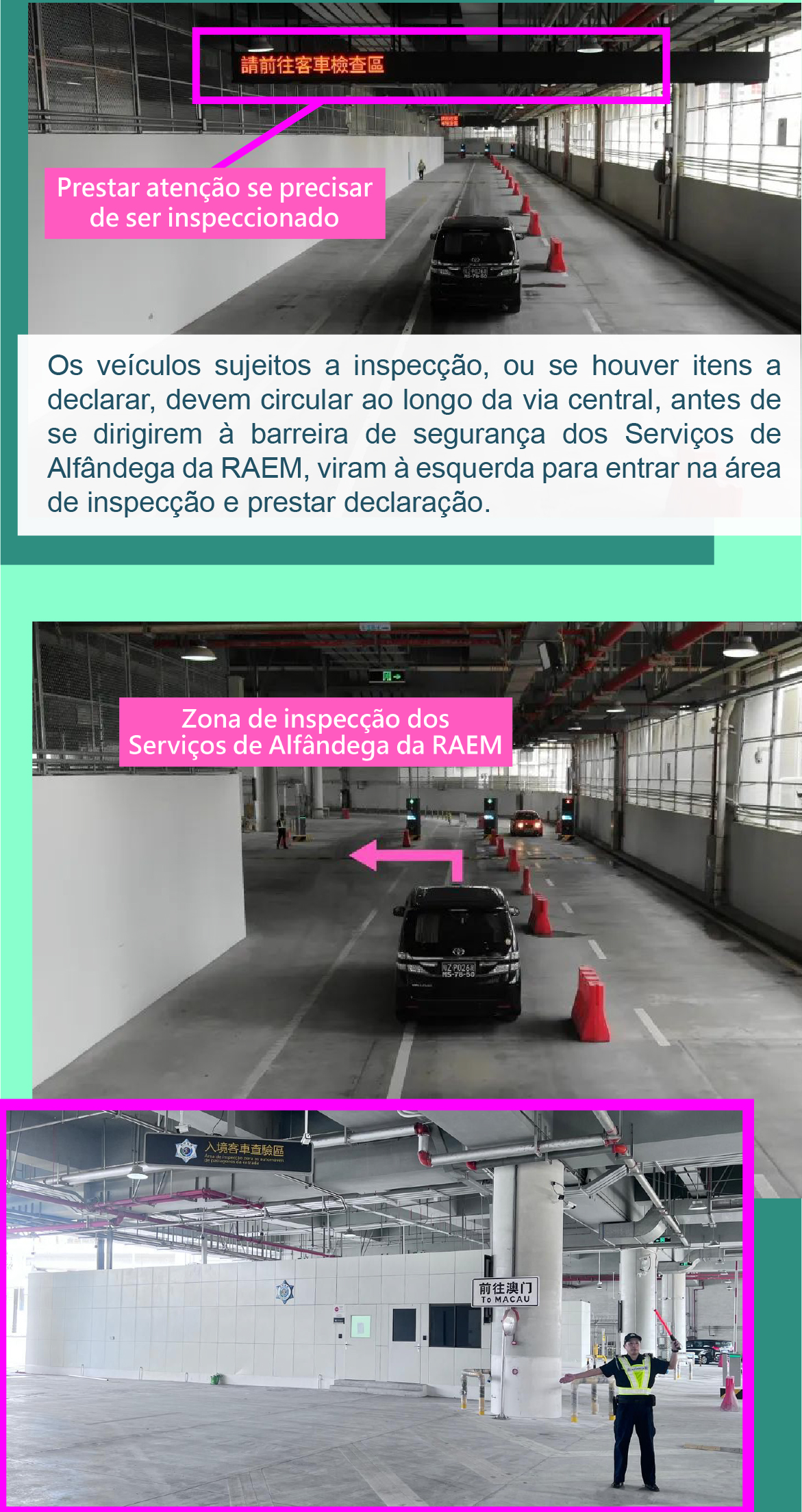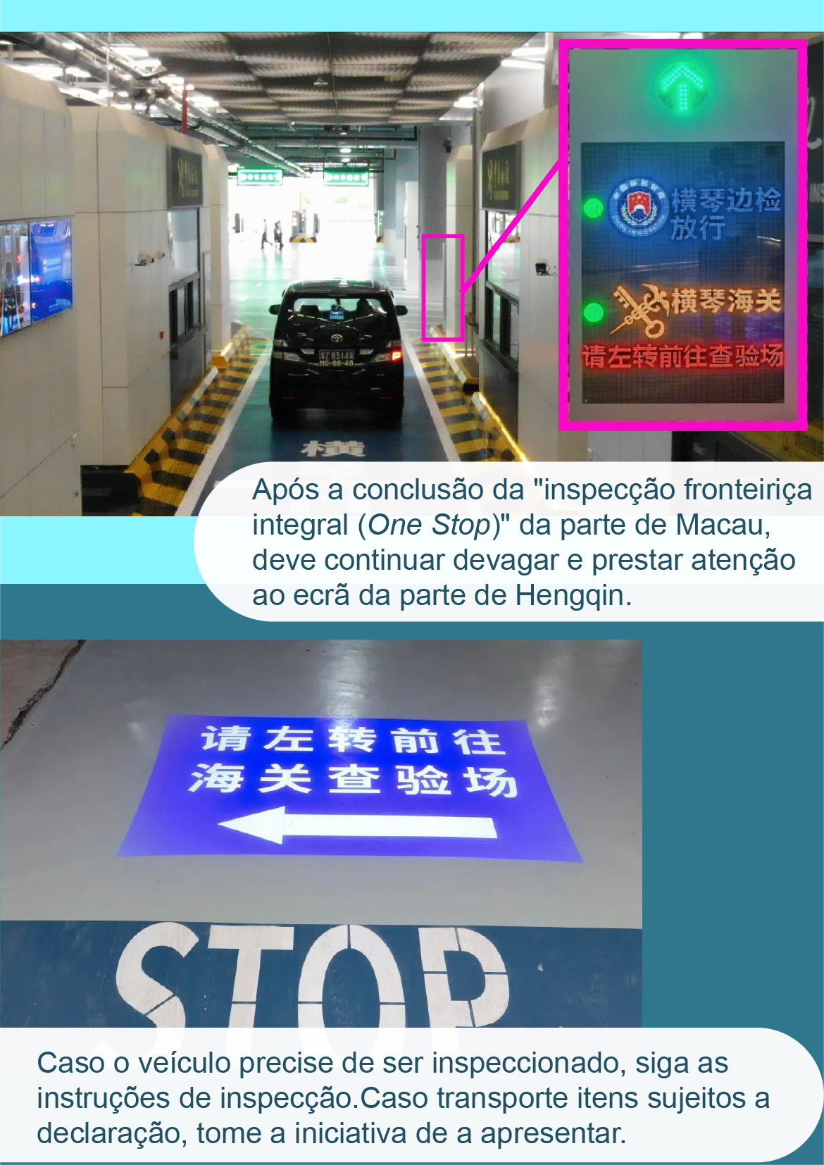• 【Inspecção aduaneira】 Corredores de "inspecção fronteiriça integral (One Stop)" do Posto Fronteiriço Hengqin