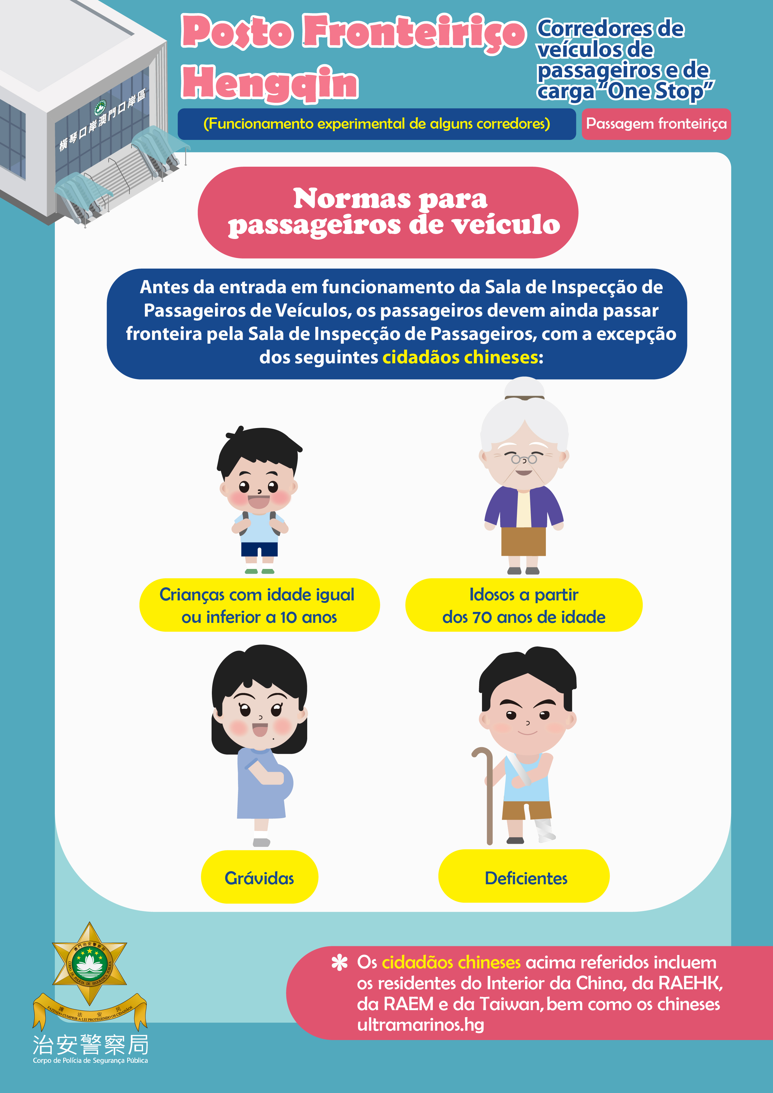 Antes da entrada em funcionamento da Sala de Inspecção de Passageiros de Veículos, os passageiros devem ainda passar fronteira pela Sala de Inspecção de Passageiros, com a excepção das pessoas definidas