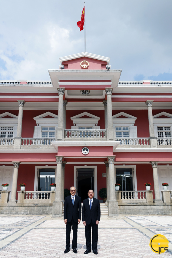 • Chefe do Executivo, Ho Iat Seng e o Presidente do Supremo Tribunal Popular Juiz-Chefe Zhang Jun , em frente da Sede do Governo.