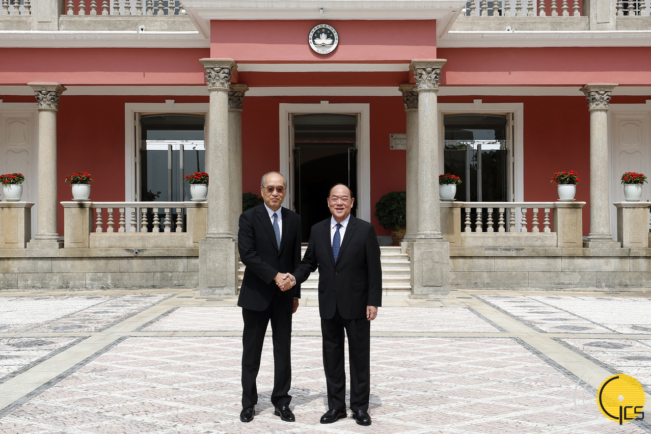 • Chefe do Executivo, Ho Iat Seng cumprimenta o Presidente do Supremo Tribunal Popular Juiz-Chefe Zhang Jun .