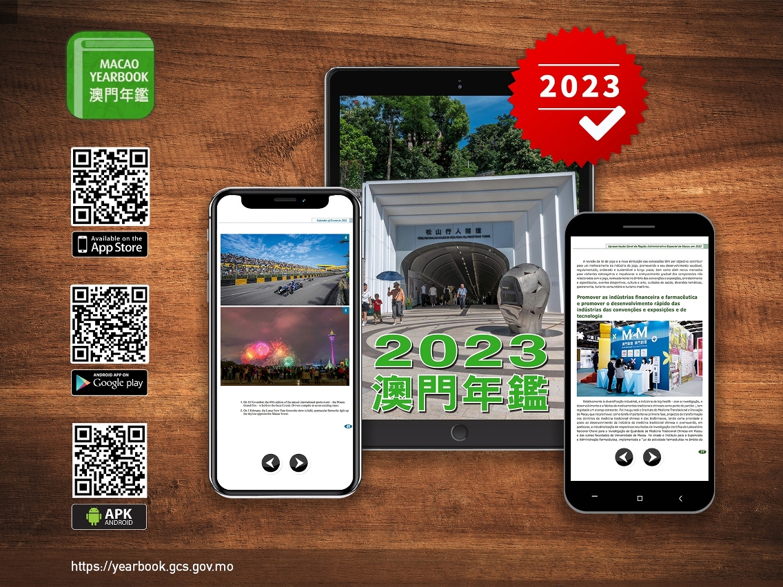 Os interessados podem consultar a página electrónica do “Macau 2023 - Livro do Ano” (https://yearbook.gcs.gov.mo) ou fazer o download da seguinte aplicação.