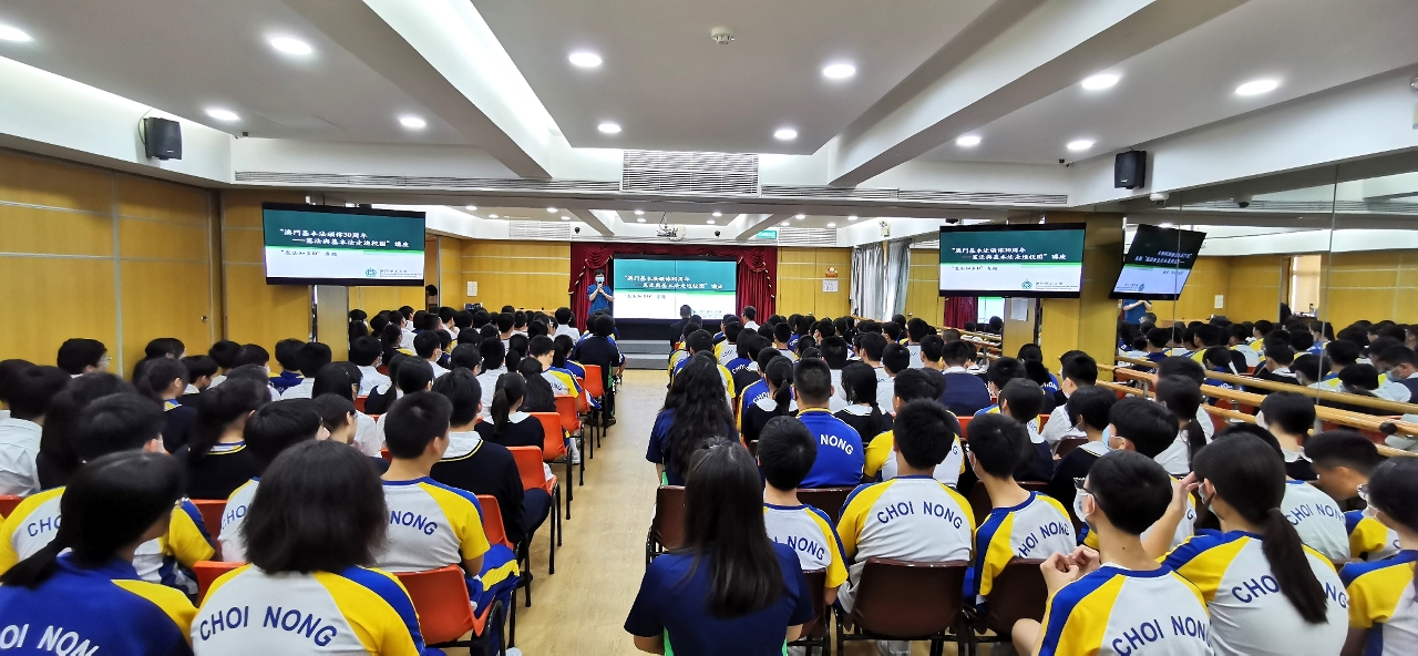 Desde a sua implementação em 20 de Dezembro de 1999, a Lei Básica de Macau e a Constituição da República Popular da China constituem, em conjunto, a base constitucional da Região Administrativa Especial de Macau (RAEM), definindo a sua ordem constitucional e garantindo o desenvolvimento a longo prazo dos diversos sectores da RAEM. Para comemorar o 30.º aniversário da promulgação da Lei Básica, o Centro de Estudos “Um País, Dois Sistemas” da Universidade Politécnica de Macau (CEUPDS-UPM) realizou uma série de palestras sob o tema “Introdução da Constituição e da Lei Básica nos campi escolares” em várias escolas secundárias de Macau, com o objectivo de reforçar o conceito de “Estado de Direito” dos jovens estudantes de Macau – alvo essencial das palestras, formando esta nova geração de Macau como defensores fiéis e praticantes activos do princípio “Um País, Dois Sistemas”, para que a tradição do amor pela Pátria e por Macau possa ser transmitida de geração em geração.