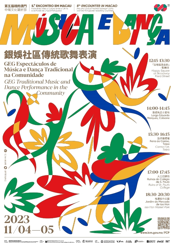 O evento “GEG Espectáculos de Música e Dança Tradicional na Comunidade” faz parte da série das actividades do 5.º “Encontro em Macau - Festival de Artes e Cultura entre a China e os Países de Língua Portuguesa”. Nesta edição, foram convidados oito grupos artísticos de música e dança tradicionais da China e do estrangeiro, incluindo o “Shenzhen Window of the World Wuzhou” do Interior da China e outros sete grupos provenientes de Angola, Brasil, São Tomé e Príncipe, Guiné Equatorial, Moçambique, Timor-Leste e de Goa, Damão e Diu. Esses grupos irão visitar diversas comunidades e locais turísticos de Macau durante dois dias consecutivos, a fim de apresentar ao público vários espectáculos repletos de entusiasmo e alegria, demonstrando o encanto cultural único da China e dos países de língua portuguesa.