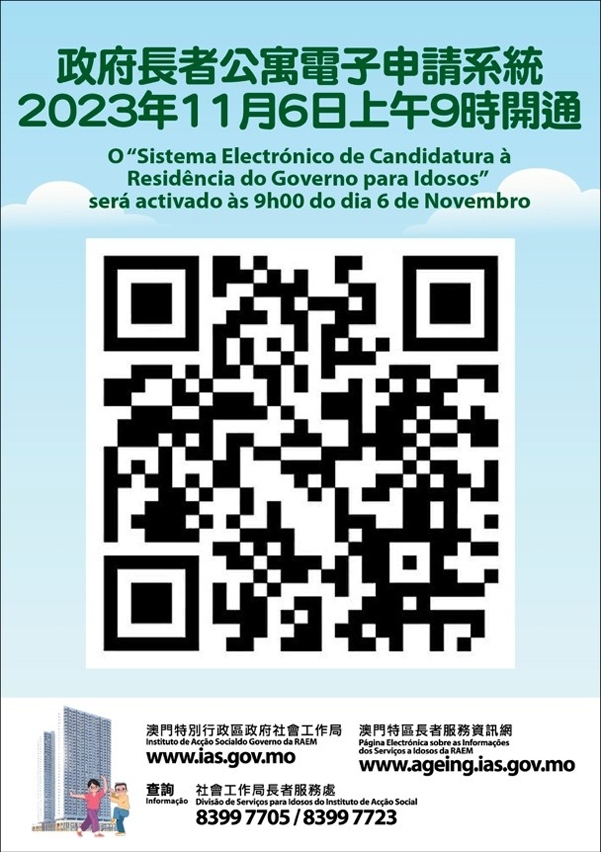 São aceites as candidaturas à Residência do Governo para Idosos a partir de amanhã (dia 6). O Instituto de Acção Social (IAS) incentiva as pessoas idosas a apresentarem a candidatura ao serviço da Residência por via online e apela aos seus familiares e amigos para que ajudem os idosos necessitados a tratarem da apresentação da candidatura. Os cidadãos podem, a partir de amanhã (dia 6), às 9 horas da manhã, aceder ao "Sistema electrónico para apresentação de candidaturas à Residência do Governo para Idosos”, através do site: www.olderpersonsapart.ias.gov.mo, e proceder à candidatura online. Os cidadãos podem ainda deslocar-se a uma das 15 unidades de serviço indicadas, incluindo a sede do IAS, os centros de acção social, a zona de exposição da Residência do Governo para Idosos, entre outras, para procederem à respectiva candidatura. Paralelamente, o IAS coordenou 62 postos de serviço, a fim de que os mesmos possam prestar apoio aos cidadãos na apresentação de candidaturas online.