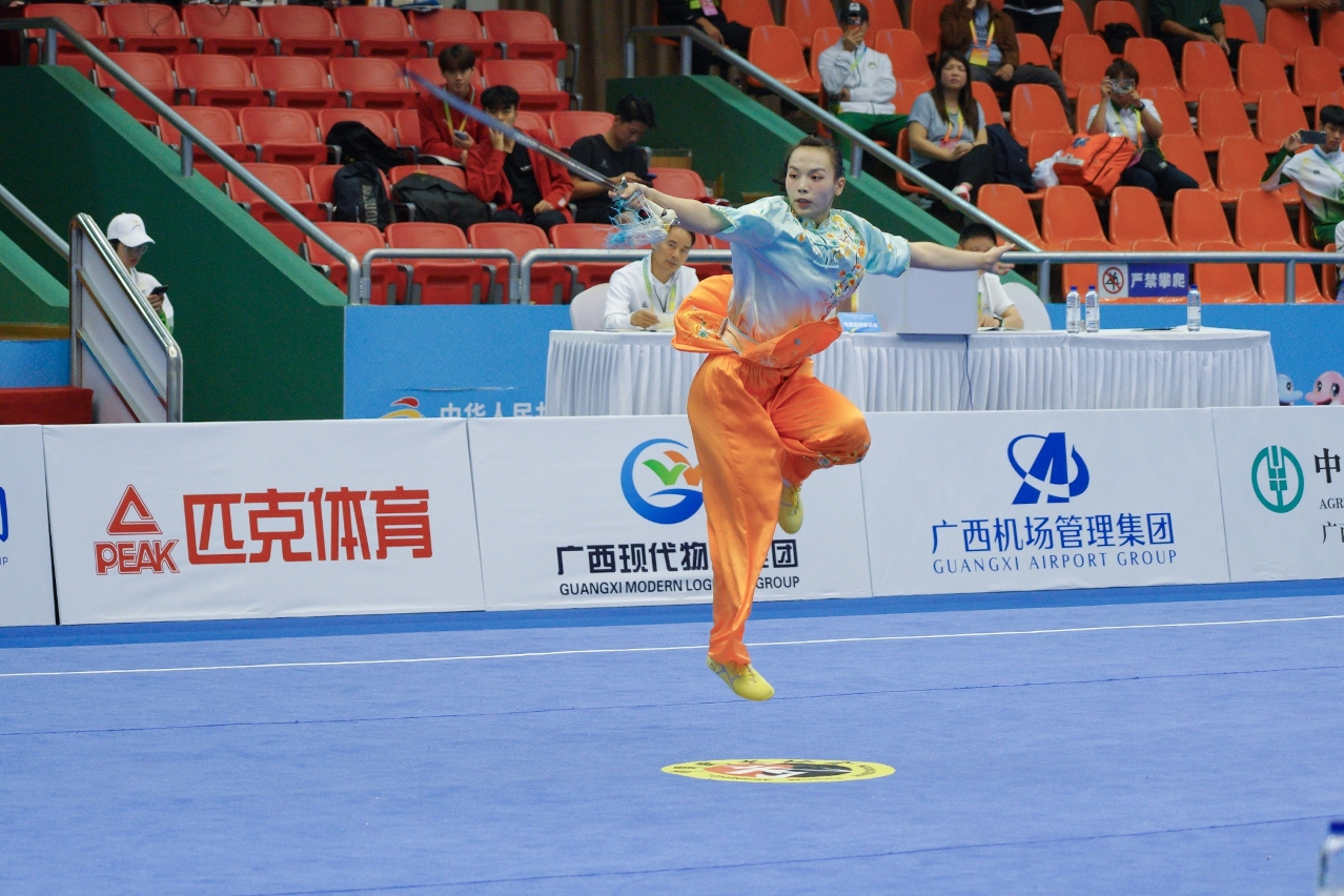 A prova realizou-se hoje (dia 8) de manhã, no Estádio da Região Autónoma da Etnia Zhuang de Guangxi, tendo a atleta de Macau Wong Weng Ian e uma atleta da Província de Sichuan obtido, simultaneamente, o mesmo resultado de 9,670 pontos. Após um cálculo mais detalhado dos pontos, Wong Weng Ian ficou em segundo lugar e conquistou a medalha de prata na modalidade feminina livre de jianshu, do grupo universitário. No pódio, Wong Weng Ian recebeu a medalha de prata pelas mãos do Subchefe da Delegação Desportiva de Macau e Subdirector da Direcção dos Serviços de Educação e de Desenvolvimento da Juventude, Teng Sio Hong. Wong Weng Ian completou todas as modalidades desta edição dos Jogos Nacionais de Estudantes (Juventude), tendo conquistado, individualmente, uma medalha de ouro e outra de prata.