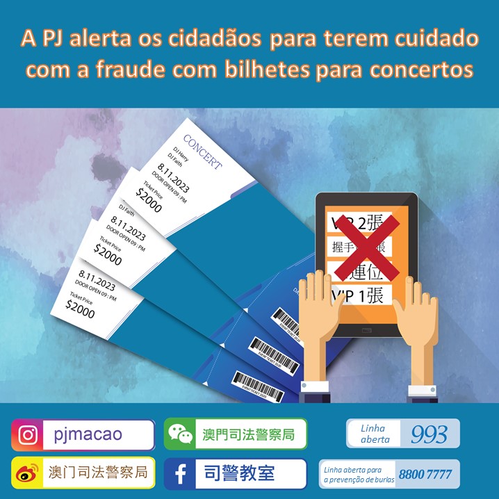 Na última semana, a PJ recebeu 22 denúncias de casos de fraude com bilhetes para concertos vendidos na rede, entre as quais, houve 15 vítimas que são estudantes. Havendo, muitas vezes, dificuldade para comprar bilhete para concerto de certos ídolos, alguns fãs continuam a escolher o meio privado digital para comprar o bilhete mesmo sabendo da existência de alto risco da forma de pagamento prévio.