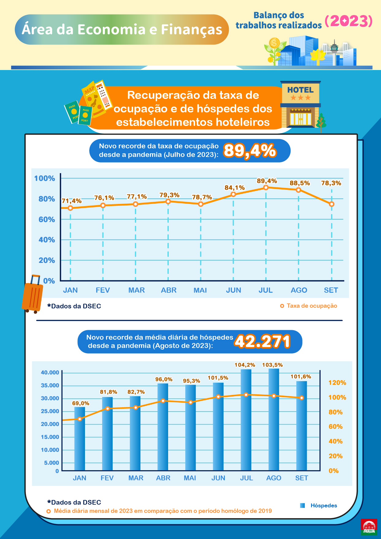 A Direcção dos Serviços de Turismo (DST) continua a aprofundar a integração intersectorial do “turismo +” e a enriquecer os elementos turísticos. Em simultâneo, tem realizado activamente promoções online e presenciais, conjugadas com os grandes eventos de cada mês, e cooperado com os operadores turísticos para expandir as fontes de visitantes, tendo obtido resultados notáveis até à data.