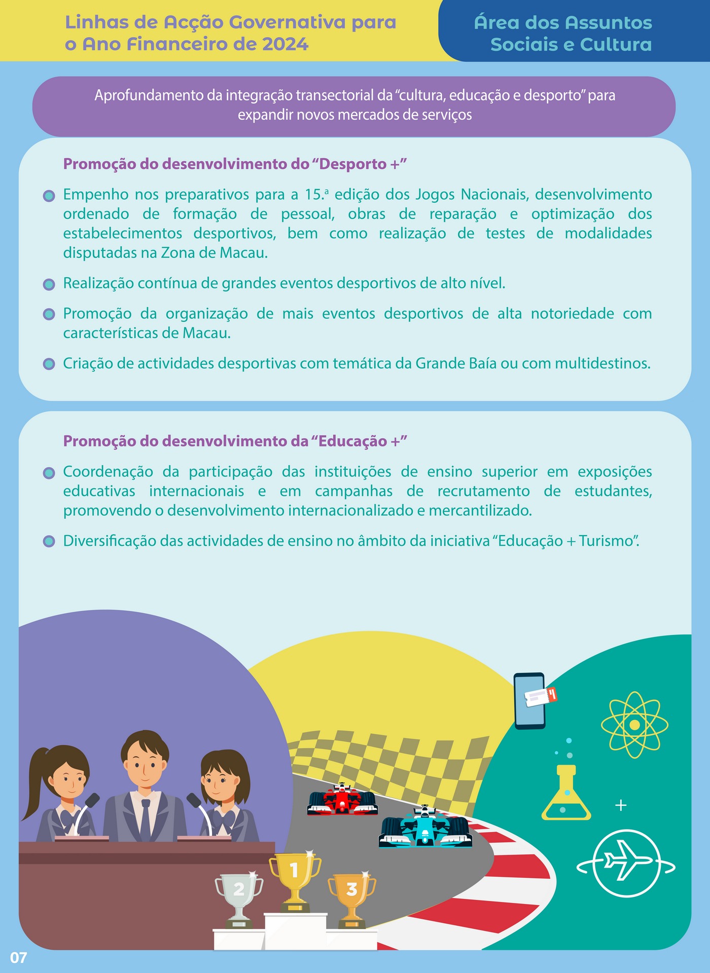 • Aprofundamento da integração transectorial da “cultura, educação e desporto” para expandir novos mercados de serviços