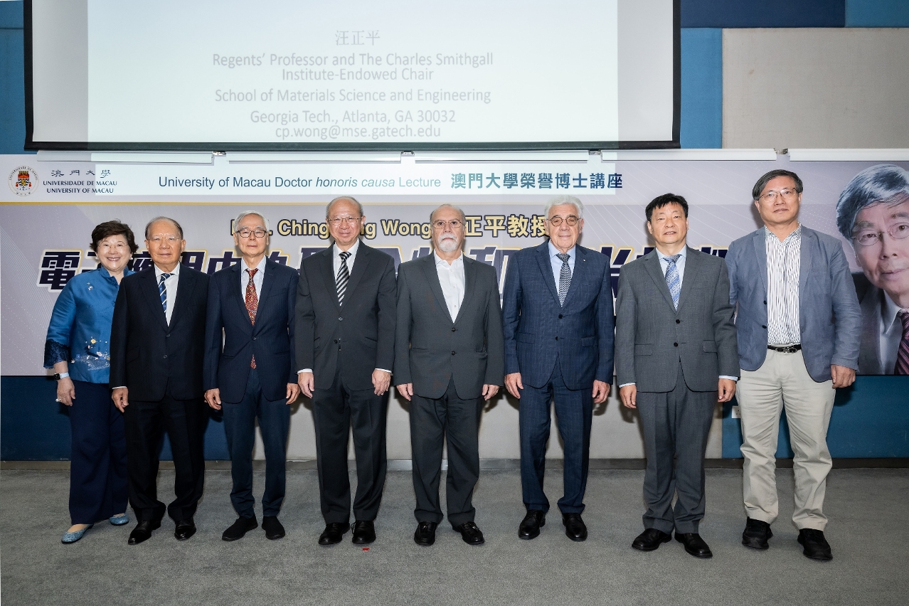 The University of Macau (UM) held a Doctor honoris causa Lecture today (2 December). Ching-Ping Wong, honorary doctor of UM, gave a talk titled ‘Polymers and Nano Materials for Electronic Application’ to discuss the applications and potential of polymers and nanomaterials. The event attracted UM faculty members and students, local secondary school teachers and students, industry practitioners, as well as prominent members of the community.