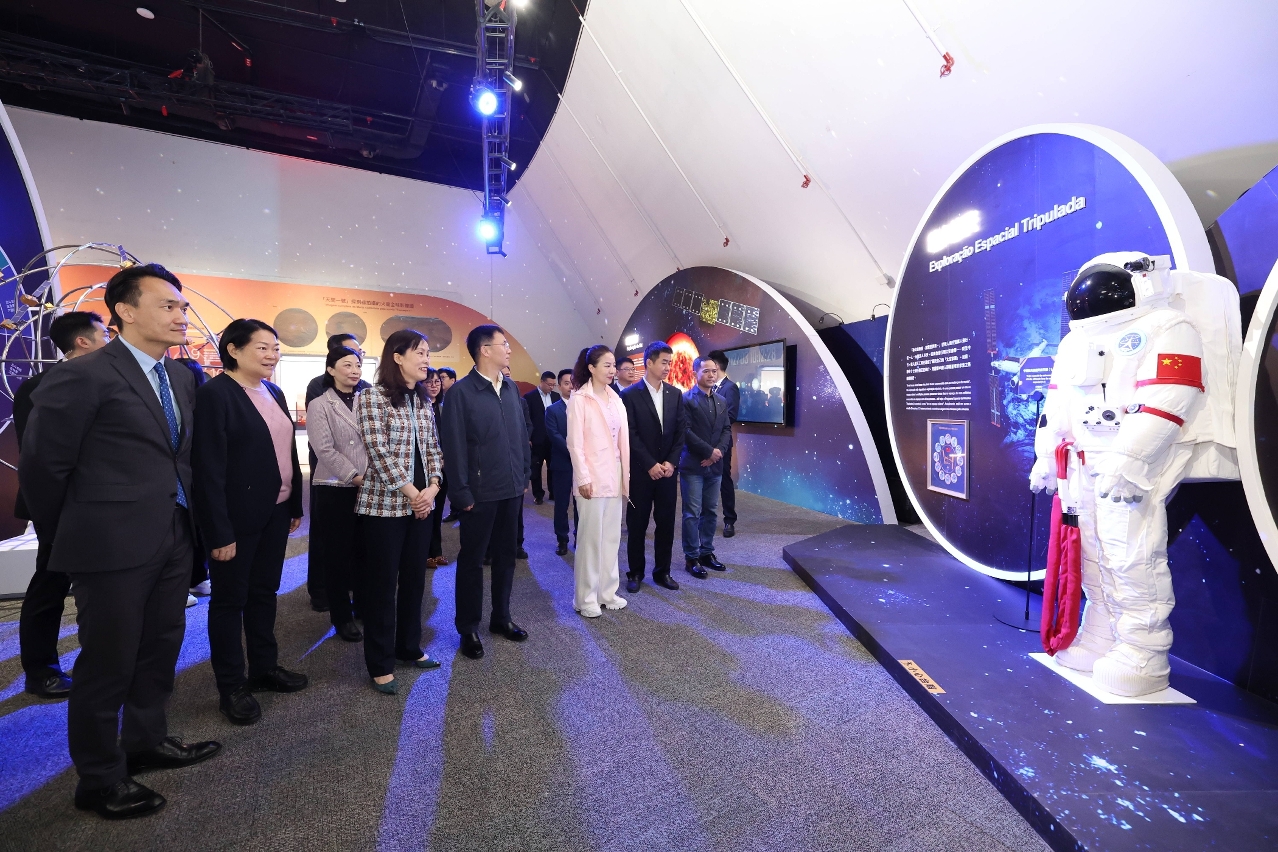 A Delegação visitou, sucessivamente, o Planetário, o Laboratório Internacional de Popularização de Ciência do Sistema de Satélite Beidou, a Galeria da Ciência de Dados, a Galeria do Espírito Cientista Chinês e a Exposição de Divulgação Científica sobre “Ciência e Tecnologia Aeroespacial e de Navegação da China em Macau - Procurar o Infinito nos Céus e Explorar as Profundezas Marinhas”, entre outros pontos de interesse do Centro. O Curador Sio Hon Pan e os formandos da iniciativa “Ciência e Tecnologia da Vila da Juventude” de Macau apresentaram as instalações do Laboratório Internacional de Popularização de Ciência do Sistema de Satélite Beidou e a Galeria da Ciência de Dados e participaram numa interação social virtual, entre outras acções.
