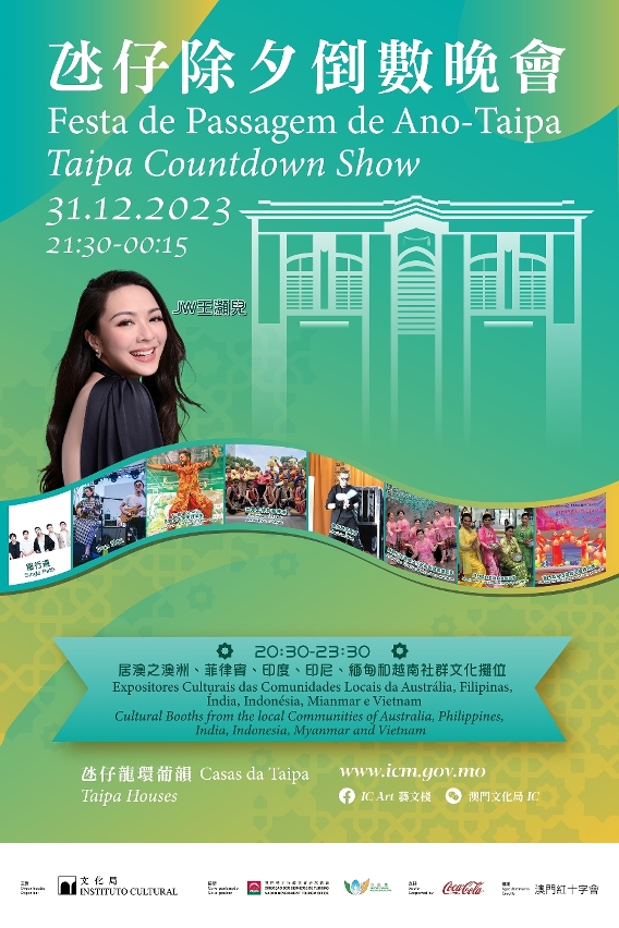 Organizados pelo Instituto Cultural e co-organizados pela Direcção dos Serviços de Turismo (DST), pelo Instituto para os Assuntos Municipais (IAM) e pela TDM – Teledifusão de Macau, o “Concerto da Passagem de Ano – Macau 2023”, com o lançamento de fogo-de-artifício apresentado pela SJM Resorts, S.A., e a “Festa da Passagem de Ano – Taipa 2023”, terão lugar na noite de 31 de Dezembro, na Praça do Lago Sai Van em Macau e nas Casas da Taipa, respectivamente. Na altura da contagem decrescente para a entrada no novo ano de 2024, será realizado um espectáculo de fogo-de-artifício deslumbrante por cima da Torre de Macau, sendo convidadas a cantora brasileira Lia Sophia no “Concerto da Passagem de Ano – Macau 2023” e a cantora de Hong Kong, Joey Wong (JW) na “Festa da Passagem de Ano – Taipa 2023” para encerrar os espectáculos com chave de ouro, e contando ainda com a presença de vários grupos artísticos locais para dar as boas-vindas ao ano novo com os residentes e turistas.