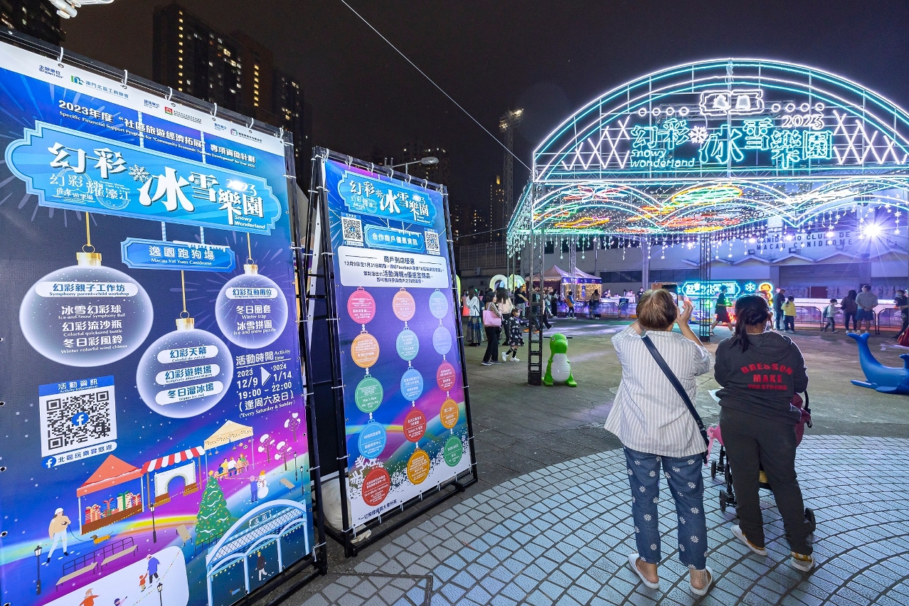 A actividade de extensão do evento, “Iluminar o Paraíso de Gelo e Neve”, subsidiada pela Direcção dos Serviços de Turismo, teve início no passado sábado (dia 9), com a instalação de um simulador de ringue de patinagem, instalações luminosas, parque de diversões, workshops para pais e filhos e jogos interactivos no Canídromo Yat Yuen, tendo atraído muitos pais a levarem os seus filhos ao local para experienciarem. O “Iluminar o Paraíso de Gelo e Neve” está aberto todos os sábados e domingos, desde 9 de Dezembro de 2023 até 14 de Janeiro de 2024, das 19h00 às 22h00.