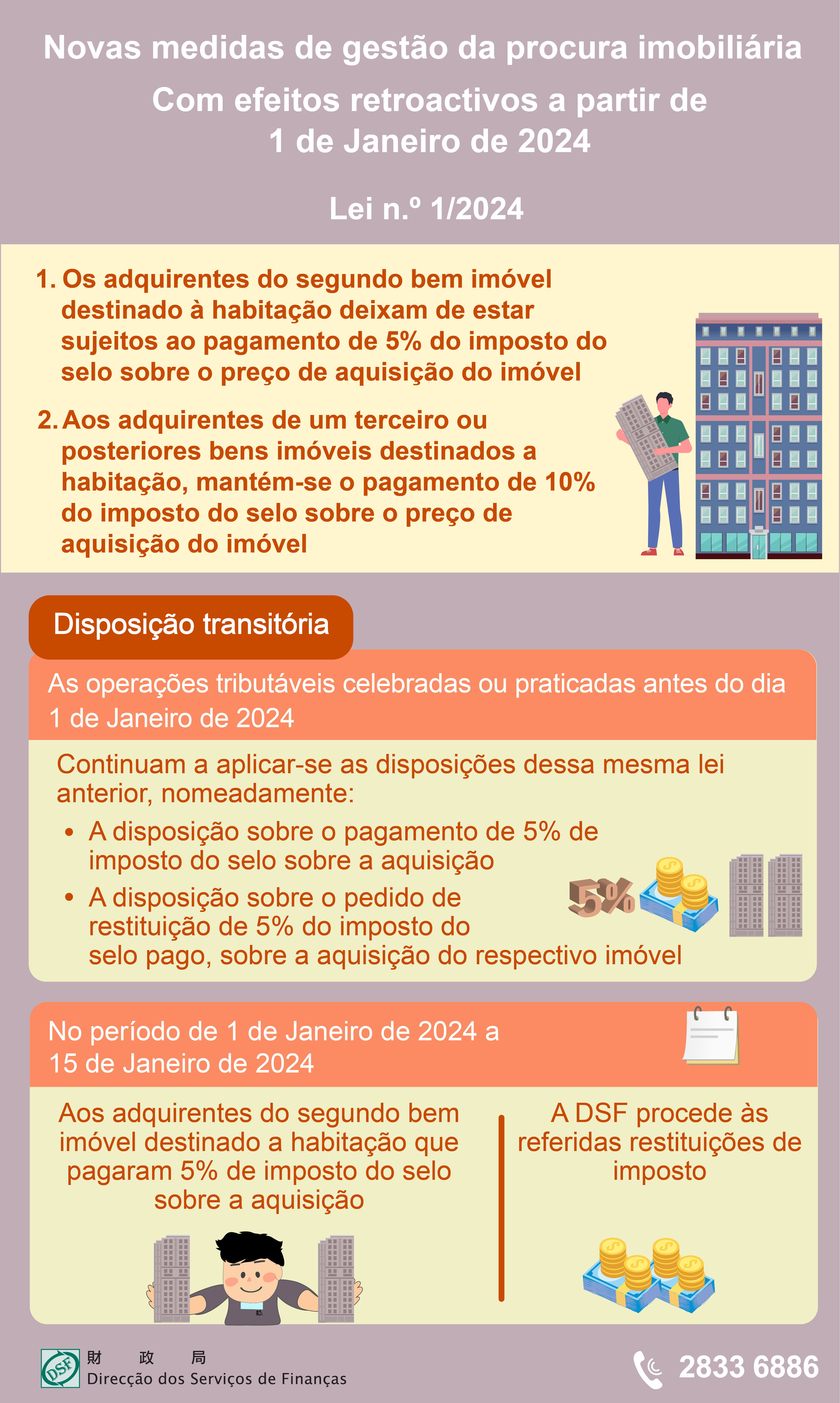 Relativamente aos indivíduos que adquiriram o segundo bem imóvel destinado a habitação e pagaram 5% de imposto do selo sobre a aquisição, no período de 1 de Janeiro de 2024 a 15 de Janeiro de 2024, a Direcção dos Serviços de Finanças vai, por sua iniciativa, proceder às referidas restituições de imposto aos indivíduos em causa.