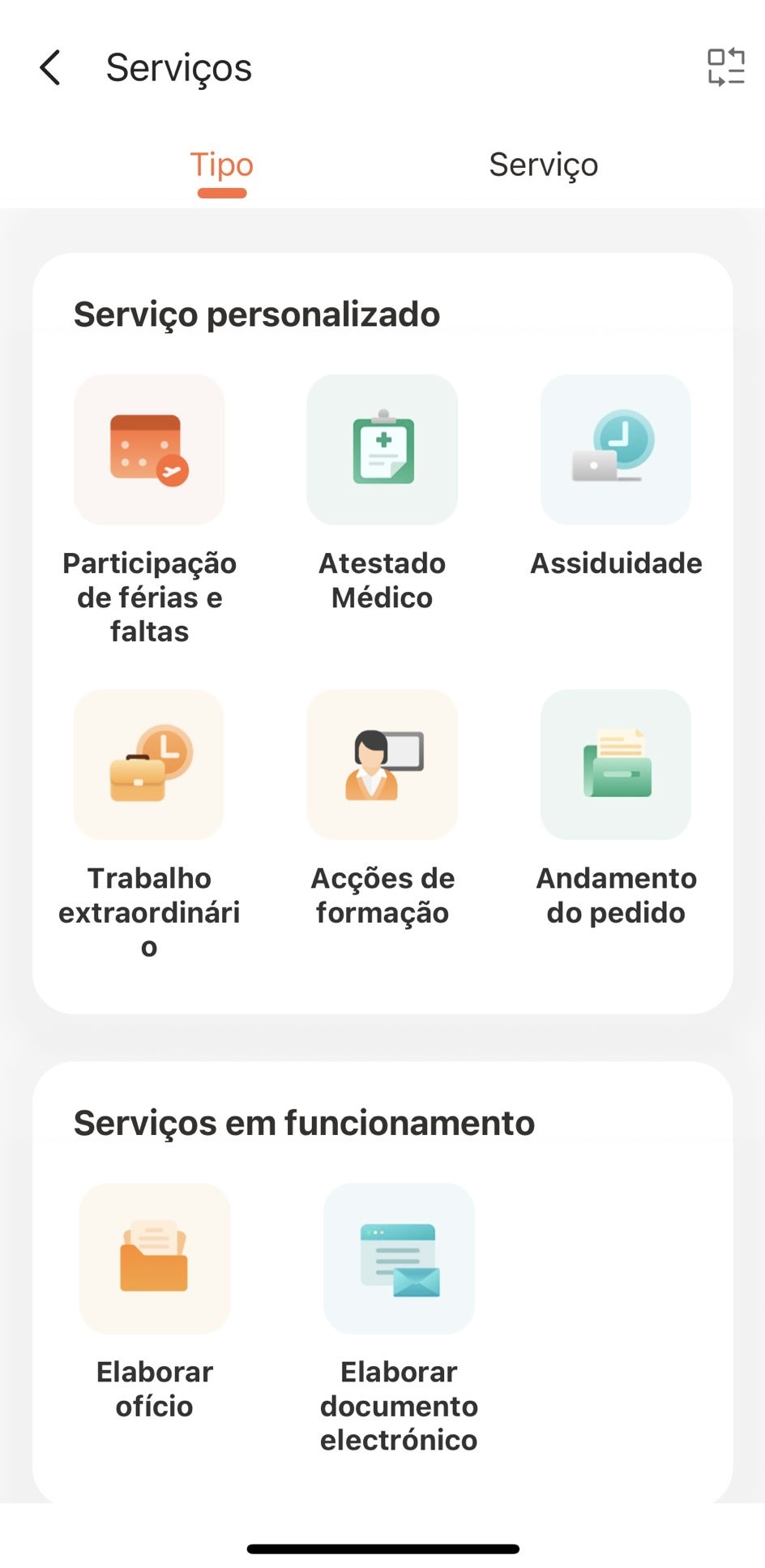 Depois de aceder aos “Assuntos Governamentais”, os trabalhadores podem consultar imediatamente o registo de assiduidade, a nota de abonos e descontos electrónica, assim como efectuar, por via electrónica, o pedido de férias ou a participação de faltas, declaração de prestação de trabalho extraordinário, inscrição em cursos de formação, apresentação de atestado médico, requerimento de subsídio de nascimento e de casamento, tratar das formalidades do serviço “eMudança” do Regime de Previdência, envio e recepção de documentos oficiais, elaborar ofícios electrónicos ou efectuar transmissão de documentos oficiais, entre outras tarefas.