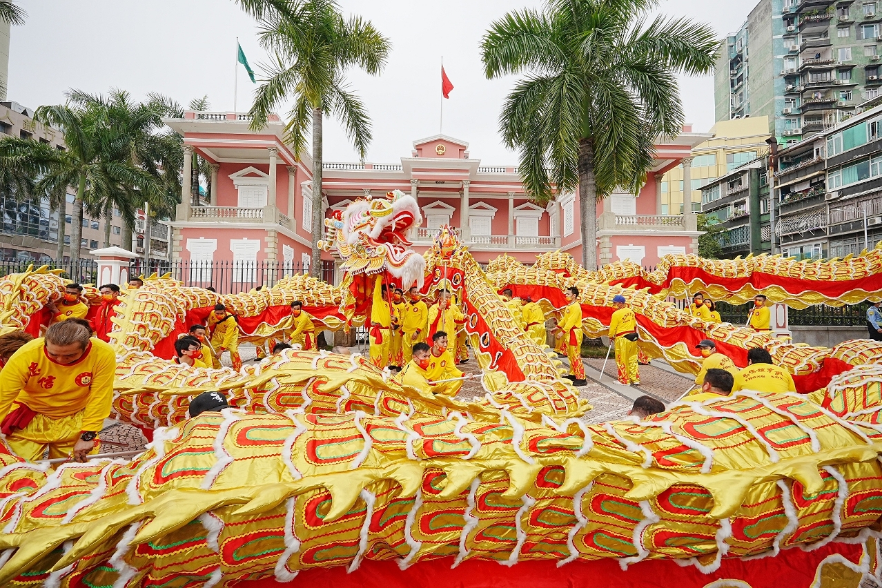 No mesmo dia, o desfile do dragão gigante dourado de 238 metros de comprimento e 18 leões, bonecos auspiciosos, o Deus da Fortuna e Par de Meninos partirá das Ruínas de São Paulo, passando pelo Largo do Senado para espalhar votos de bom ano aos residentes e visitantes e oferecer lembranças festivas. O desfile do dragão gigante percorrerá a Calçada do Tronco Velho, Santo Agostinho, Rua Central, Travessa do Paiva, Sede do Governo, Travessa do Padre Narciso, Igreja de S. Lourenço, Largo do Lilau, Rua da Barra, Templo de A-Má, Avenida do Lago Sai Van e Rotunda do Lago Nam Van, até à Praça do Lago Sai Van.