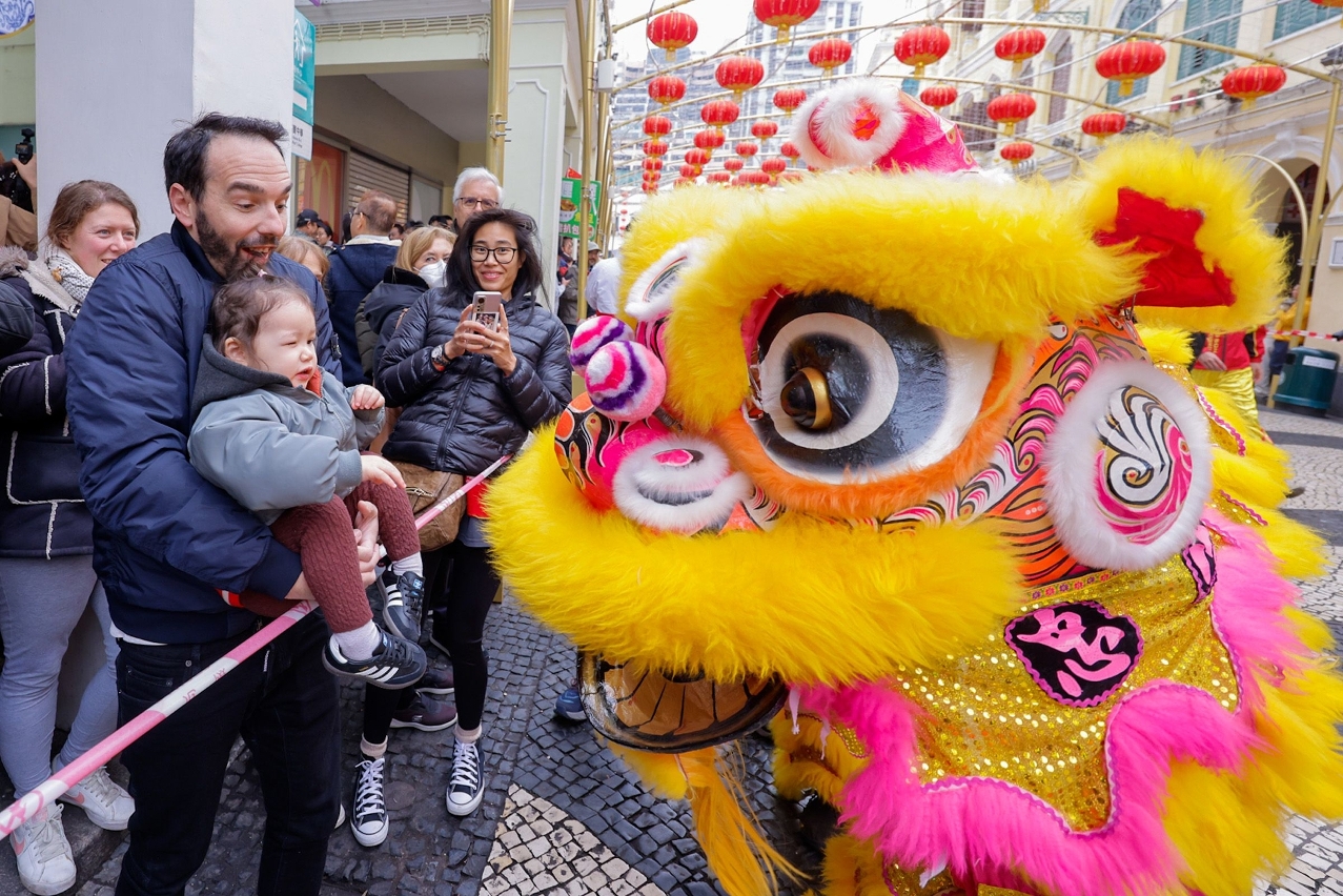 A directora dos Serviços de Turismo, Maria Helena de Senna Fernandes, o presidente do Conselho de Administração para os Assuntos Municipais do Instituto para os Assuntos Municipais, José Tavares, a presidente do Instituto Cultural, Leong Wai Man, os subdirectores da DST, Cheng Wai Tong e Ricky Hoi, membros do Conselho para o Desenvolvimento Turístico, entre outros, desejaram bom ano aos residentes e visitantes, e presidiram à cerimónia de vivificação do dragão gigante dourado e leões, no largo das Ruínas de S. Paulo, realizada na manhã do primeiro dia do ano, segundo o calendário lunar chinês, à qual se seguiu uma queima de panchões, no Largo do Senado.