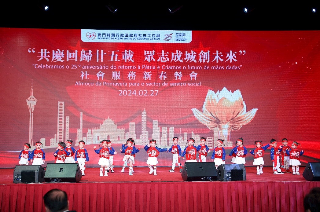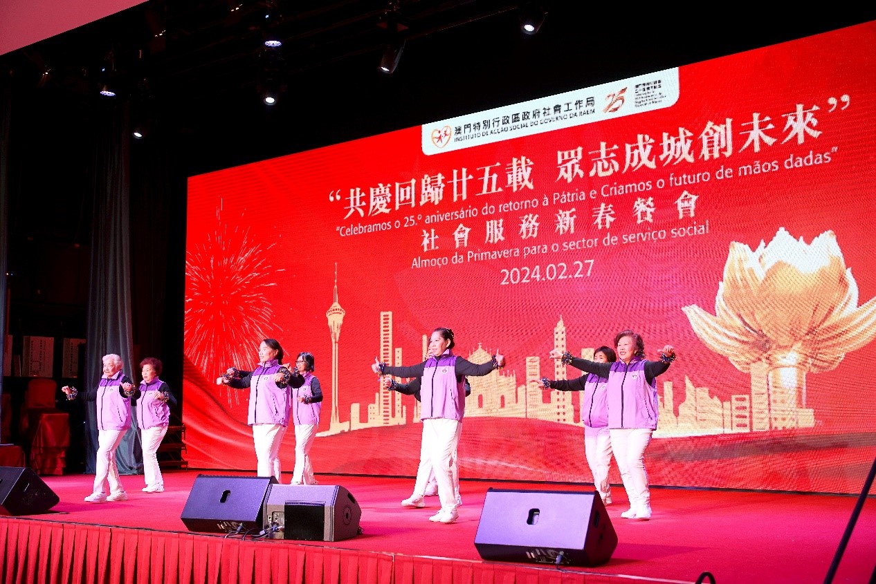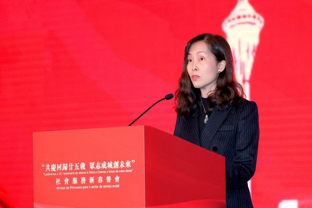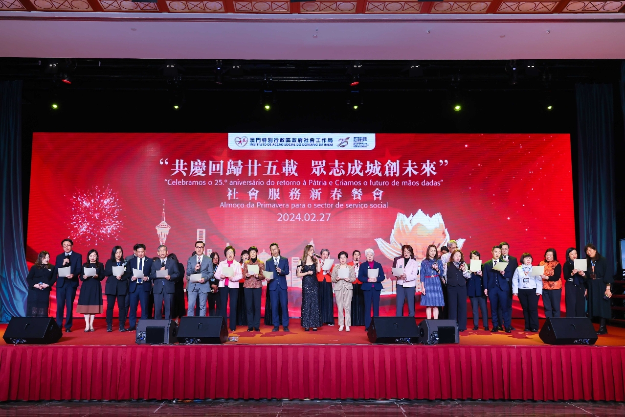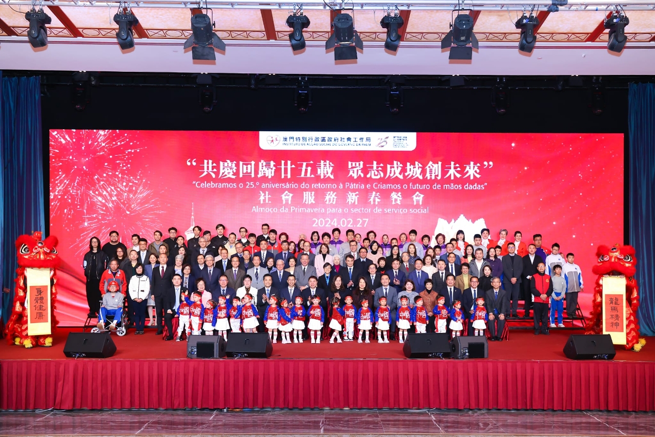 O Instituto de Acção Social (IAS) realizou hoje (dia 27) o almoço de primavera para o sector do serviço social – “Celebramos o 25.º Aniversário do Retorno de Macau à Pátria e Criamos o futuro de mãos dadas”, no qual se reuniram mais de 600 representantes das instituições particulares de solidariedade social e participantes dos sectores sociais por ocasião das celebrações do ano novo lunar. A cerimónia de abertura do almoço de primavera foi presidida pela Secretária para os Assuntos Sociais e Cultura, Ao Ieong U, pelo Secretário-Geral Adjunto, também Chefe do Departamento dos Assuntos Sociais do Gabinete de Ligação do Governo Popular Central na RAEM, Huang Huagai, pela Chefe do Gabinete da Secretária para os Assuntos Sociais e Cultura, Ho Ioc San, pelo Presidente do IAS, Hon Wai, pelo Director da Direcção dos Serviços de Educação e de Desenvolvimento da Juventude, Kong Chi Meng, pelo Director dos Serviços de Saúde, Lo Iek Long e pela Presidente Substituta do Instituto Cultural, Cheong Lai San.