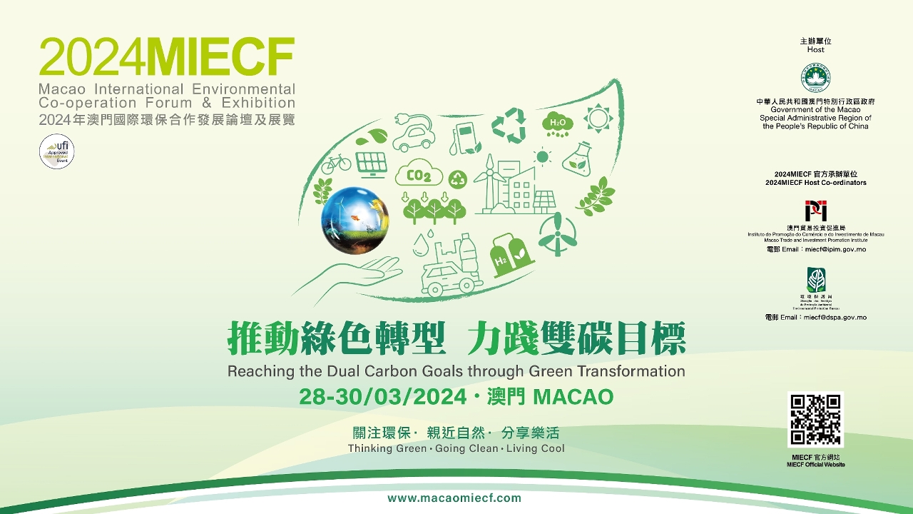 • O Fórum e Exposição Internacional de Cooperação Ambiental de Macau 2024, organizado pelo Governo da Região Administrativa Especial de Macau, terá lugar entre 28 e 30 de Março