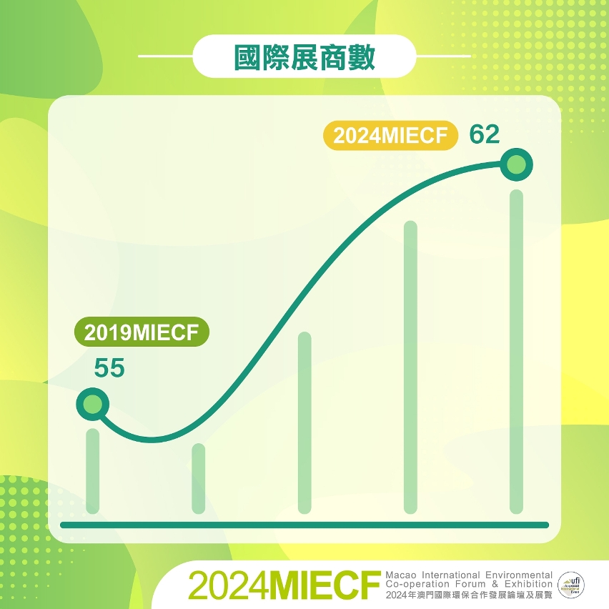 Sendo uma exposição profissional reconhecida pela Associação Global da Indústria de Exposições (UFI), o Fórum e Exposição Internacional de Cooperação Ambiental de Macau (MIECF) realiza, este ano, a sua 16.ª edição. Todos os anos, o MIECF introduz novos elementos no seu programa em estreita articulação com as políticas ambientais do país e do Governo da Região Administrativa especial de Macau (RAEM), enquanto continua a reforçar o seu nível de internacionalização e profissionalismo através da atracção de expositores e compradores internacionais. Na edição de 2024, o MIECF contará com mais de 60 expositores internacionais de 13 países e regiões, que irão trazer mais energia verde à transformação sustentável das principais indústrias “1+4” e à exploração de mais oportunidades de negócios internacionais no domínio da protecção ambiental, contribuindo assim para que o MIECF continue a desempenhar o seu papel de plataforma verde. Além dos expositores, cerca de 80 compradores internacionais de quase 30 países e regiões marcarão presença em Macau para contactos comerciais e aquisições.