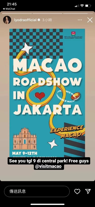 Ampla divulgação online e presencial da promoção “Sentir Macau” em Jacarta