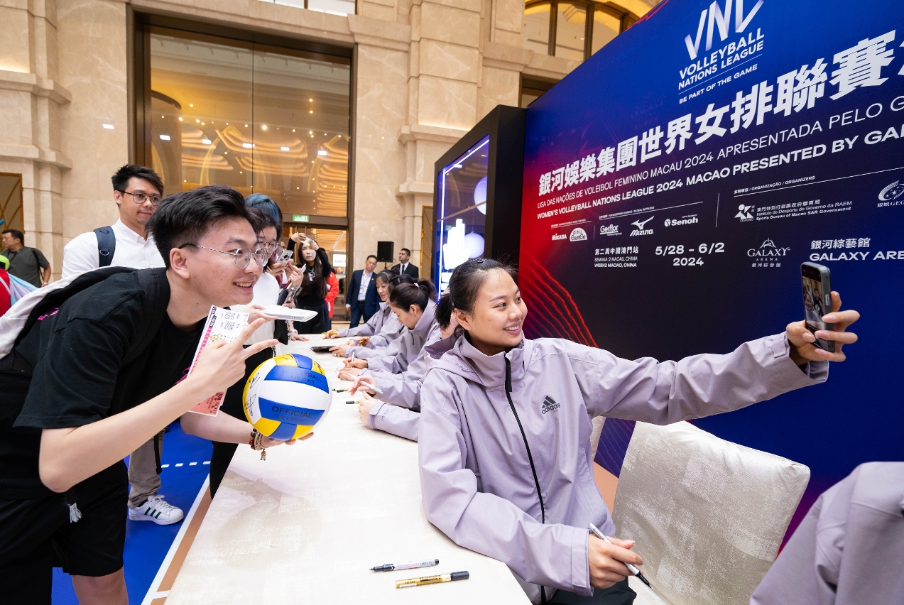 As jogadoras da selecção chinesa de voleibol feminino incluem Gong Xiangyu, Wu Mengjie, Ni Feifa, Gao Yi, Wang Wenhan e Zhuang Yusha participaram hoje (24) numa sessão de autógrafos, interagiram com os adeptos. Além disso, as jogadoras também se encontraram com jovens jogadores locais para partilhar a sua experiência, e encorajaram a esforçar nos treinos para se tornarem bons jogadores.