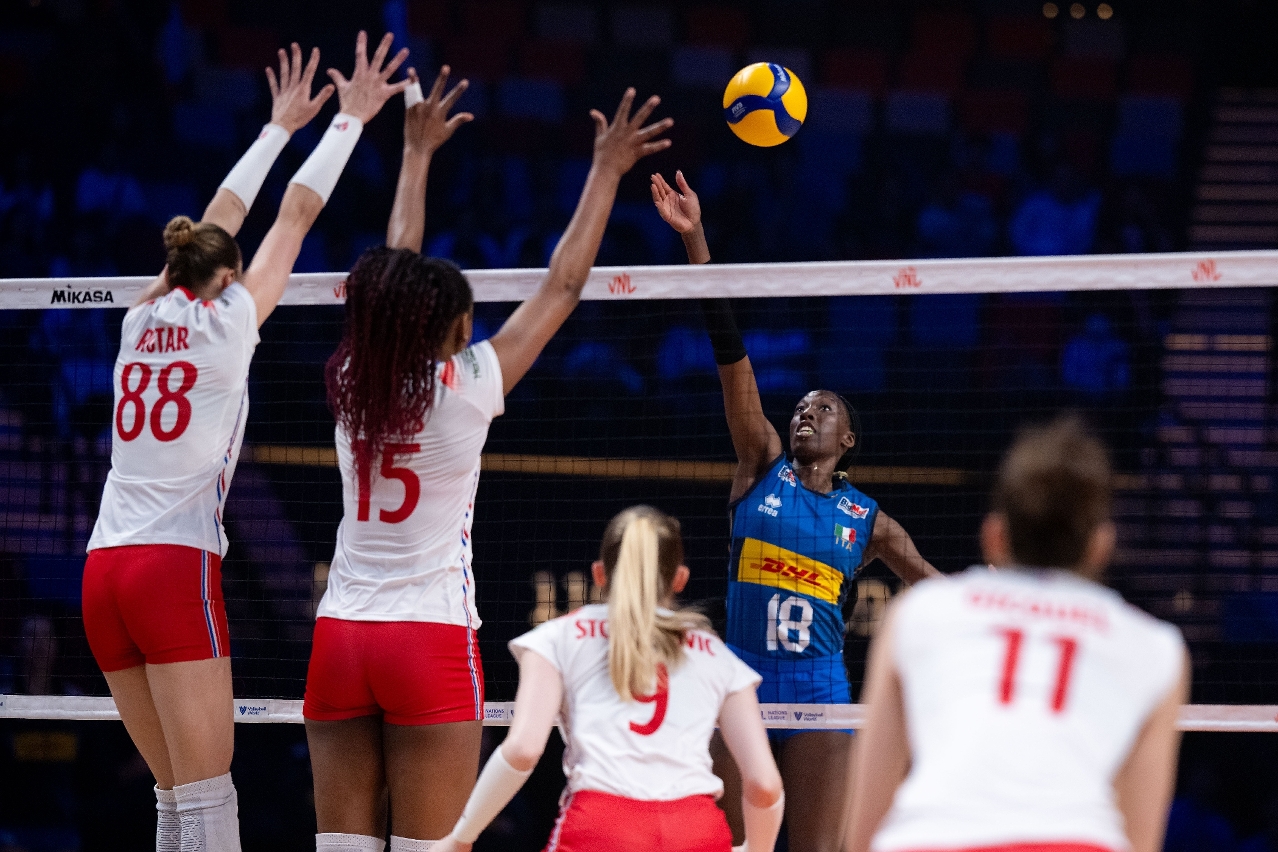 No jogo da tarde entre a Itália e a França, a equipa italiana não foi ameaçada. Enfrentando as jogadas ofensivas e defensivas da França, a Itália conseguiu uma taxa de recepção do saque superior a 70% durante todo o jogo. Com desempenhos notáveis de Paola Egonu e Marina Lubian, a Itália venceu três sets seguidos (25:15, 25:14, 25:14), derrotando a França com facilidade. A Itália irá jogar contra a República Dominicana no próximo jogo.