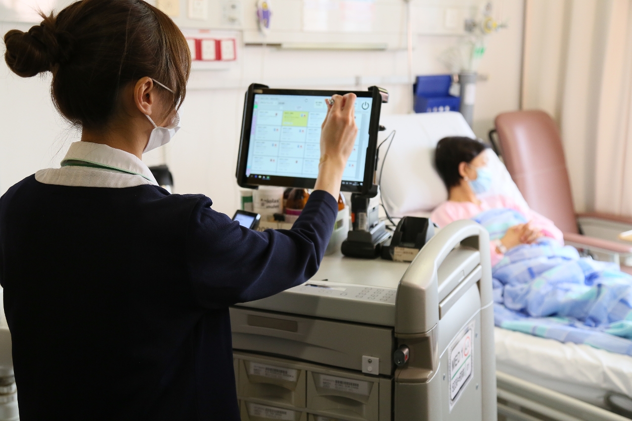 Ao mesmo tempo, o Centro Hospitalar Conde de São Januário, através de um sistema móvel de cuidados de enfermagem, substituiu o método tradicional de triagem de pontos, permitindo ao pessoal de enfermagem efectuar várias operações ao lado das camas. Anteriormente, o procedimento de registo de dados dos doentes necessita de 20 minutos e agora é apenas de cinco (5) a seis (6) minutos, o que faz aumentar a eficiência. Este sistema também possui a função de identificação electrónica, através de digitalização da pulseira dos doentes para a leitura dos dados de identificação, evitando o registo de erros sem recurso a papel, o que favorece a equipa médica e de enfermagem dominarem, de imediato, a situação da doença, a fim de elevar a qualidade e a segurança, e aproximar ainda mais a relação médico-doente. Relativamente à gestão de medicamentos, os hospitais introduziram o sistema automático de aviamento de medicamentos para optimizar o processo. Após a ligação automática da máquina de aviamento de medicamentos às receitas médicas, a taxa de precisão do aviamento foi de 99,9% e o tempo de espera para o levantamento de medicamentos diminuiu de 24,6 minutos para 21,8 minutos. Em Setembro de 2023, o hospital lançou o serviço de marcação prévia para o levantamento de medicamentos especializados na "Conta única”, aumentando a conveniência no âmbito de levantamento de medicamentos.