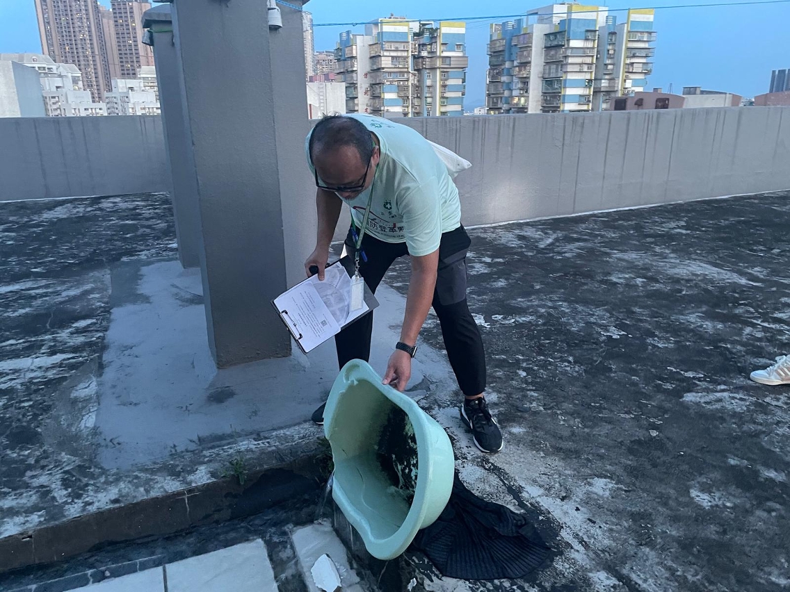 Durante a inspecção, o pessoal dos Serviços de Saúde prestou apoio aos residentes na verificação dos recipientes com águas estagnadas frequentemente encontradas nos domicílios, tais como, vasos de flores, bandeja para plantas, entre outros, e verificou a situação de proliferação de larvas em alguns recipientes, de alguns residentes. Em alguns terraços dos edifícios existiram os recipientes com água estagnada, que não foram bem tapados ou invertidos, o que já permita a proliferação de mosquitos e aumente o risco de propagação da febre de dengue, razão pela qual o pessoal dos Serviços de Saúde prestou de imediato, o apoio necessário aos residentes no tratamento e na realização de acções de sensibilização e educação.
