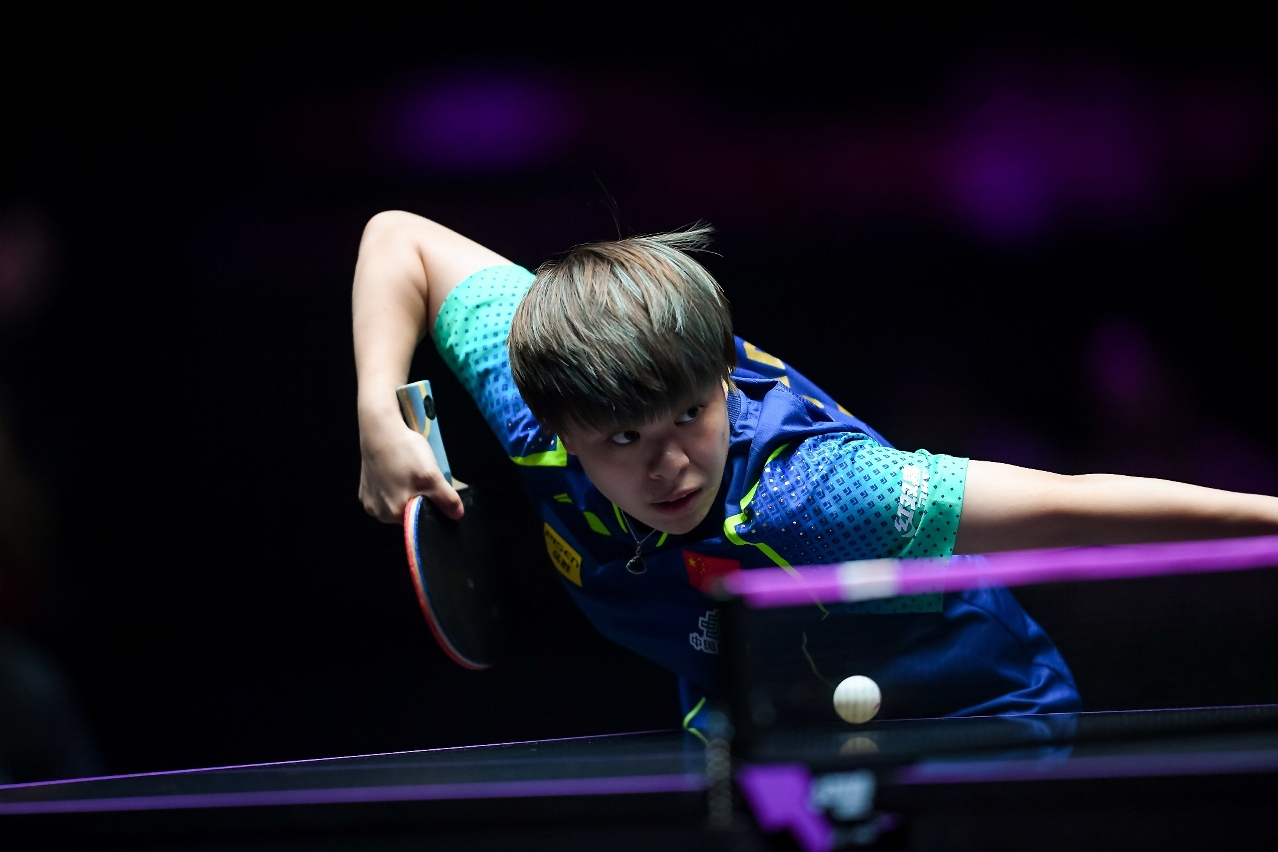Nos singulares femininos encontrou-se Sun Yingsha da China contra Miwa Harimoto do Japão. No primeiro set apesar Sun Yingsha de estar em desvantagem com 8:10, envidou esforços e recuperou por 12:10, marcando 1:0. Aconteceu a mesma situação com Sun Yingsha no segundo set que no princípio também foi 8:10 e recuperou por 14:12, marcando 2:0. Miwa Harimoto que estava em desvantagem conseguiu empatar nos dois sets seguidos por 11:9 e 13:11, com o resultado de 2:2. Por fim, Sun Yingsha reforçou as técnicas de ataque e venceu por 11:3 e 11:8, com o resultado de 4:2 apurando-se para a final.