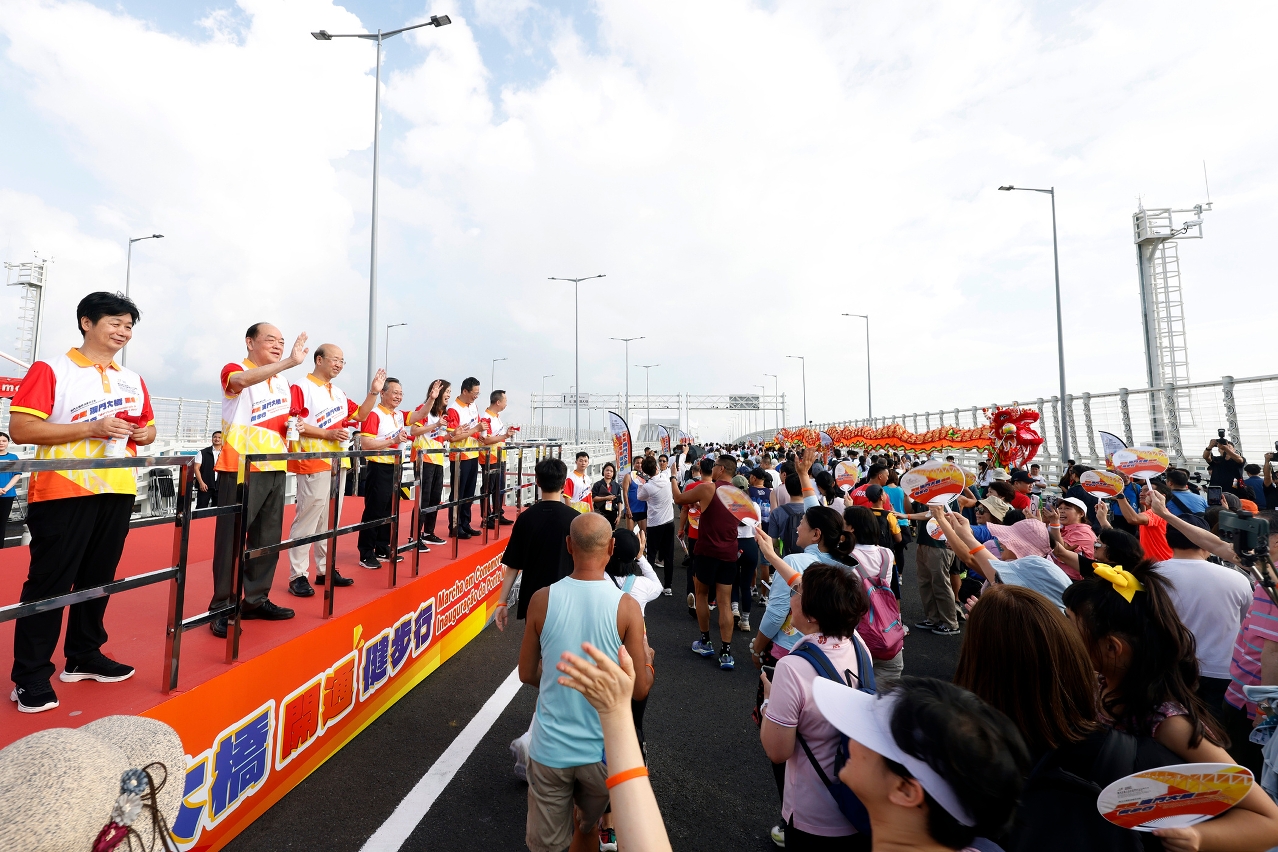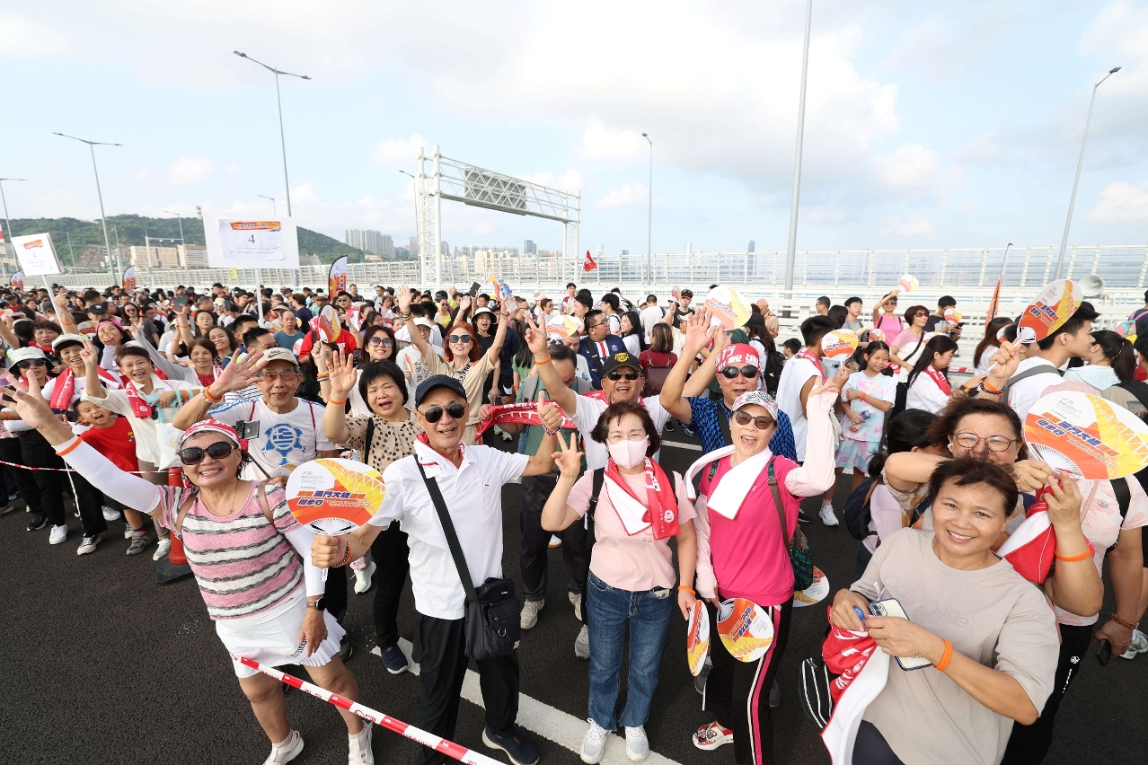 Em comemoração do 75.º Aniversário da Implantação da República Popular da China e do 25.º Aniversário do Estabelecimento da Região Administrativa Especial de Macau, o Instituto do Desporto realizou hoje (dia 29), às 08H00 da manhã, a “Marcha em Comemoração da Inauguração da Ponte Macau” antes da sua inauguração. O evento atraiu a participação de cerca de 21.000 residentes e o percurso começa no viaduto de acesso da Ponte Macau do lado de Pak On Taipa, segue para o viaduto de acesso da Ponte Macau perto da zona A e daí volta para o local de partida (lado de Pak On), com uma distância total de cerca de 6km.