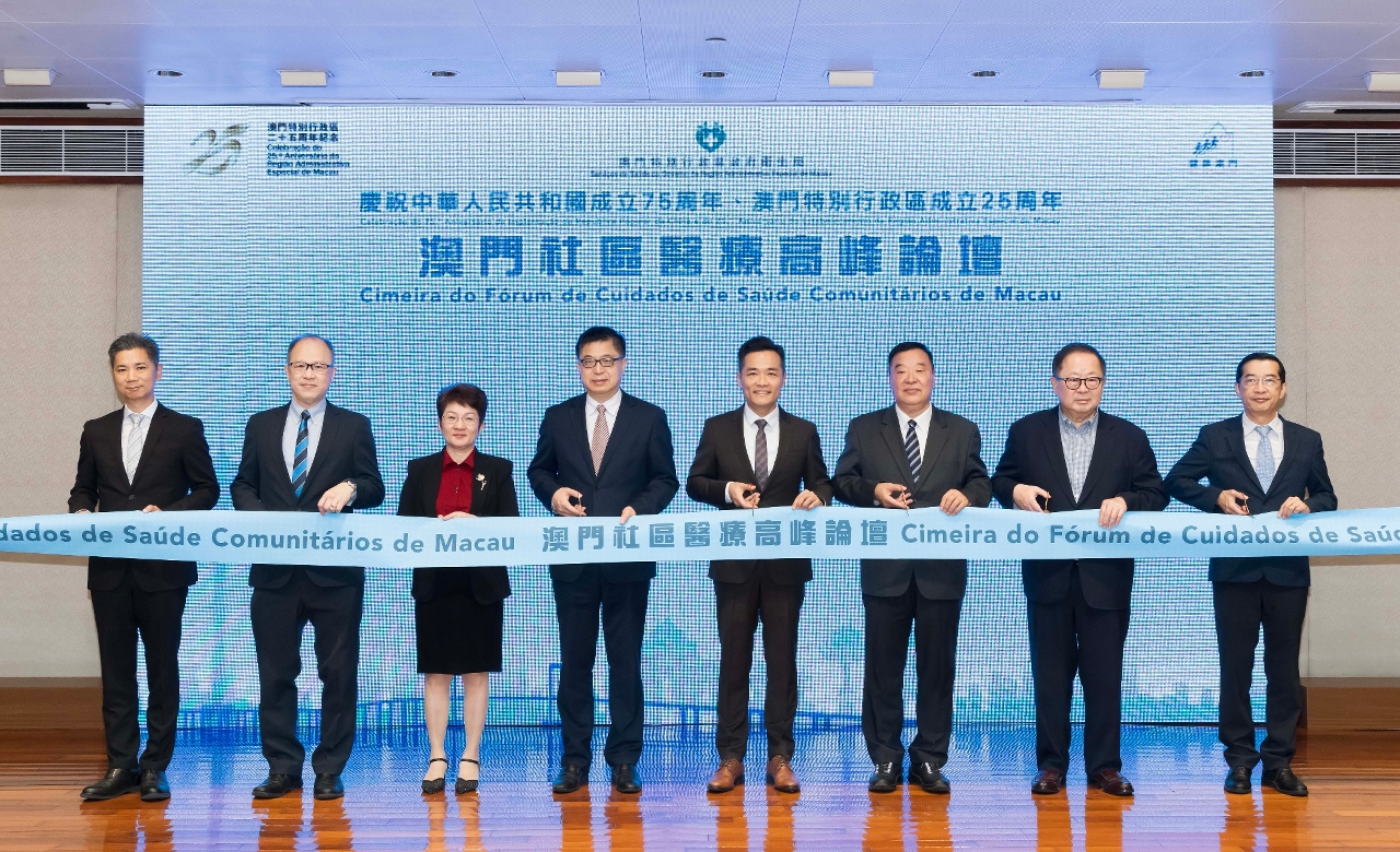 Recentemente, os Serviços de Saúde realizaram, no Centro de Saúde da Areia Preta, a "Comemoração do 75.º Aniversário da Implantação da República Popular da China, o 25.º Aniversário do Estabelecimento da Região Administrativa Especial de Macau e a Cimeira do Fórum de Cuidados de Saúde Comunitários em Macau", tendo abordado a implementação eficaz dos diversos objectivos do "Plano de Acção para Macau Saudável", através do sistema de saúde comunitário, no sentido de elevar o nível geral de saúde dos residentes de Macau e concretizar a visão de Macau saudável. O Director do Departamento de Publicidade e Cultura do Gabinete de Ligação do Governo Popular Central na RAEM, Dr. Wan Sucheng, o Director dos Serviços de Saúde, Dr. Lo Iek Long, o Vice-Presidente Permanente da Escola de Saúde Pública de Van Ke da Universidade de Tsinghua e Director do Instituto de Pesquisa da China em Saúde da Universidade de Tsinghua, Professor Liang Wannian, a Inspectora de 2ª classe da Comissão de Saúde de Fujian, Dra. Zhang Fudi, o Director do Instituto de Medicina Familiar de Hong Kong Dr. Lee Kwok Tong, o Presidente do Instituto de Medicina Familiar de Hong Kong, Dr. David Chao, o Subdirector dos Serviços de Saúde, Dr. Cheang Seng Ip e o Subdirector dos Serviços de Saúde, substituto, Dr. Tai Wa Hou presidiram conjuntamente a cerimónia de abertura.
