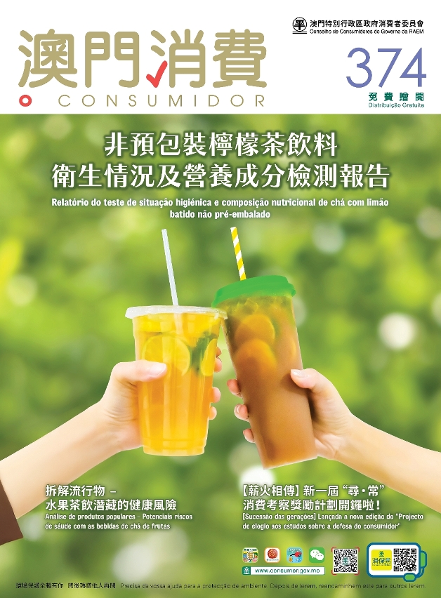 Os consumidores são sempre bem-vindos a aceder à página electrónica do CC (https://www.consumer.gov.mo) ou à sua conta de WeChat para visualizar variadas edições do boletim “O Consumidor”, consultando as informações sobre a defesa dos direitos, tais como os relatórios de teste e investigação divulgados pelo CC e as dicas de consumo.