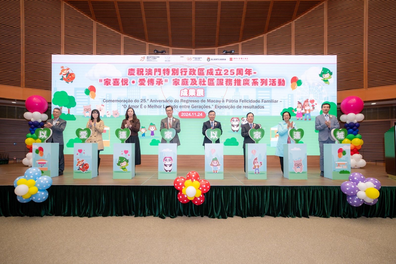 O ano de 2024 assinala o 30.º aniversário do Dia Internacional da Família e o 25.º aniversário do estabelecimento da Região Administrativa Especial de Macau (RAEM). Neste sentido, o Instituto de Acção Social (IAS) realizou hoje (dia 24), em conjunto com a Federação das Associações dos Operários de Macau (FAOM), o Gabinete Coordenador dos Serviços Sociais Sheng Kung Hui Macau e as seis “redes de cooperação a nível de zonas”, com mais de 40 instituições de serviço social, a Celebração do 25.º Aniversário do Estabelecimento da Região Administrativa Especial de Macau – Exposição de Resultados da Série de Actividades de Promoção de Serviços Familiares e Comunitários – Felicidade Familiar – “O Amor é o Melhor Legado entre Gerações”, no Salão de Convenções do Centro de Ciência de Macau. A cerimónia de inauguração foi co-presidida pelo vice-presidente do IAS, Tang Yuk Wa, pelo subchefe do Departamento dos Assuntos Sociais do Gabinete de Ligação do Governo Popular Central na RAEM, Zhao Heqing, pela subdirectora, substituta da Direcção dos Serviços de Educação e de Desenvolvimento da Juventude, Choi Man Chi, pelo chefe do Departamento de Gestão Administrativa e Financeira, Lei Seng Lei, pela chefe da Divisão de Prestação e Promoção de Serviços aos Leitores do Instituto Cultural, Lam Weng Na, pela enfermeira-chefe dos Serviços de Saúde, Yu Bun, pelo vice-presidente da FAOM, Cheong Koc Iun e pelo director de serviços do Gabinete Coordenador dos Serviços Sociais Sheng Kung Hui Macau, Ip Kam Po. No local do evento disponibilizaram-se teatro imersivo para famílias, túnel do tempo temático, barracas de actividades de desenhos para colorir, barracas para apresentação de produtos para a educação familiar, local para tirar fotos com mascotes e a estreia da curta-metragem “Entre Gerações”, entre outras actividades. Registou-se uma participação de 800 pessoas/vezes.