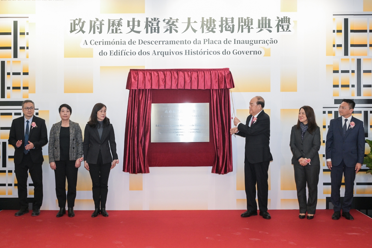 Cerimónia de descerramento da placa do Edifício dos Arquivos Históricos do Governo elevando o trabalho arquivístico de Macau a um novo patamar