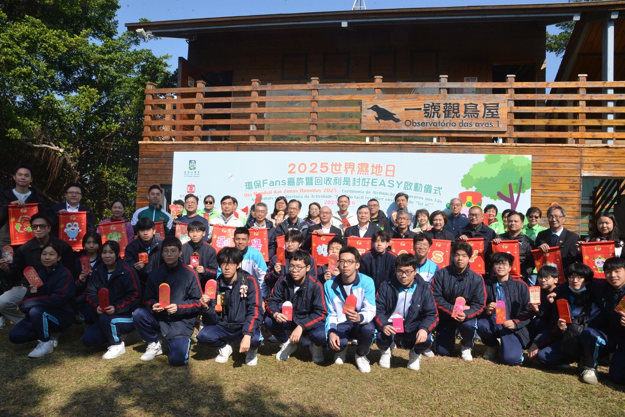 Para comemorar o Dia Mundial das Zonas Húmidas, assinalado no dia 2 de Fevereiro, a Direcção dos Serviços de Protecção Ambiental (DSPA) organizou, no dia 18 de Janeiro de 2025, nas Zonas Ecológicas no Cotai, o Dia Mundial das Zonas Húmidas 2025 – Cerimónia de Atribuição de Louvores aos Fãs Ambientais e de Lançamento da Actividade “É Muito Fácil Recolher Envelopes de Lai Si”, visando incentivar todos os sectores da sociedade a praticar activamente actos de redução de carbono.