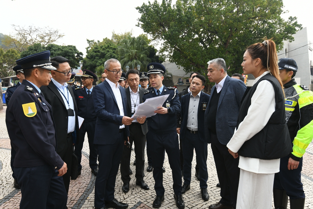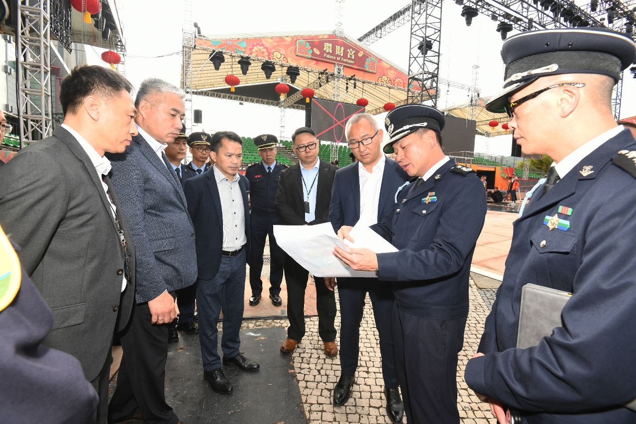 Os dirigentes e chefias percorreram as zonas do Templo de A-Má, o percurso do desfile de carros alegóricos e a Feira de Ano Novo Lunar da Praça do Tap Seac, a fim de se inteirar da situação no terreno, do plano de controlo de multidão, das medidas de gestão do tráfego rodoviário, da mobilização do dispositivo policial, do plano de evacuação de emergência, entre outros trabalhos. Pretende-se através destas vistorias instruir os serviços e entidades competentes para estarem preparados e definirem bem os planos e estratégias com vista a elevar a capacidade de reposta a emergências face a possíveis incidentes súbitos, garantido a realização das actividades comemorativas de forma ordeira e segura.