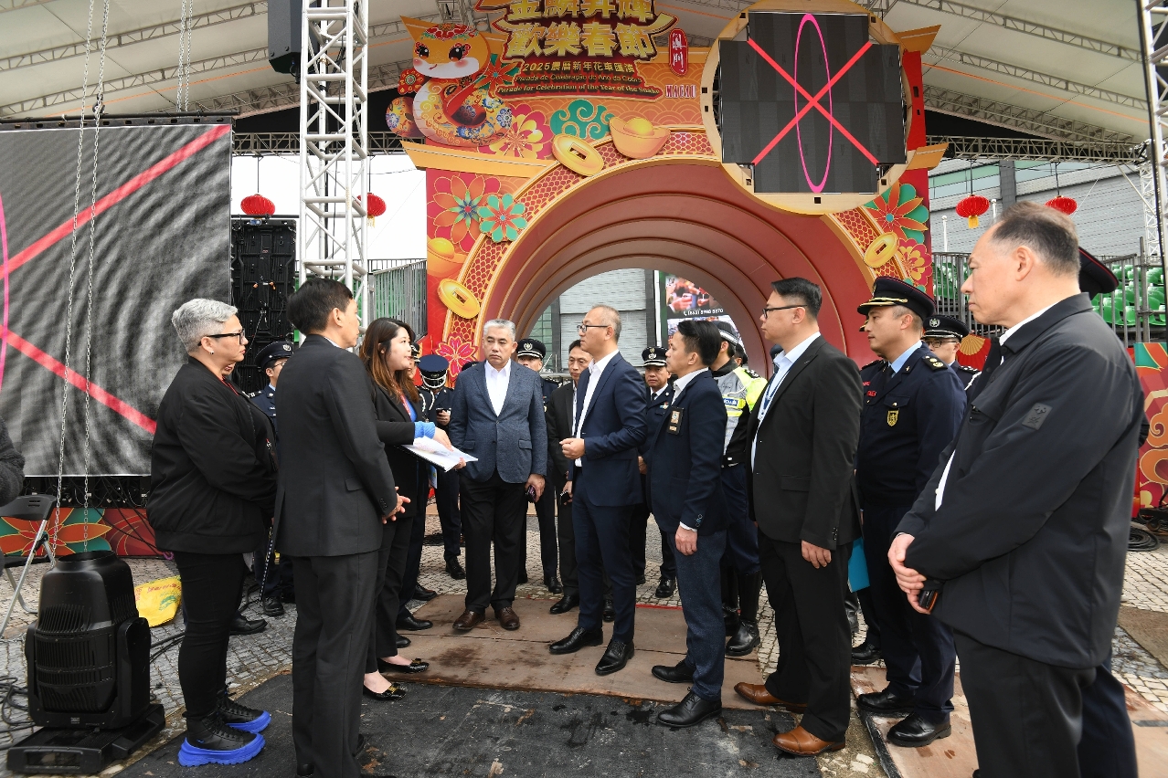 Com a aproximação do Ano Novo Lunar, Macau será palco de uma série de actividades festivas, prevendo uma grande afluência de público e ao mesmo tempo a existência de potenciais riscos de segurança. No sentido de assegurar a ordem pública da região durante o Ano Novo Chinês, bem como proteger a segurança da vida e dos bens dos residentes e turistas, os dirigentes e chefias dos serviços da área de segurança, juntamente com a Direcção dos Serviços de Turismo, o Instituto Cultural (IC), o Instituto para os Assuntos Municipais (IAM) e a Direcção dos Serviços para os Assuntos de Tráfego (DSAT), efectuaram ontem (23 de Janeiro), vistorias aos trabalhos de segurança a implementar nos locais de realização de eventos e ouviram sobre o andamento desses trabalhos.
