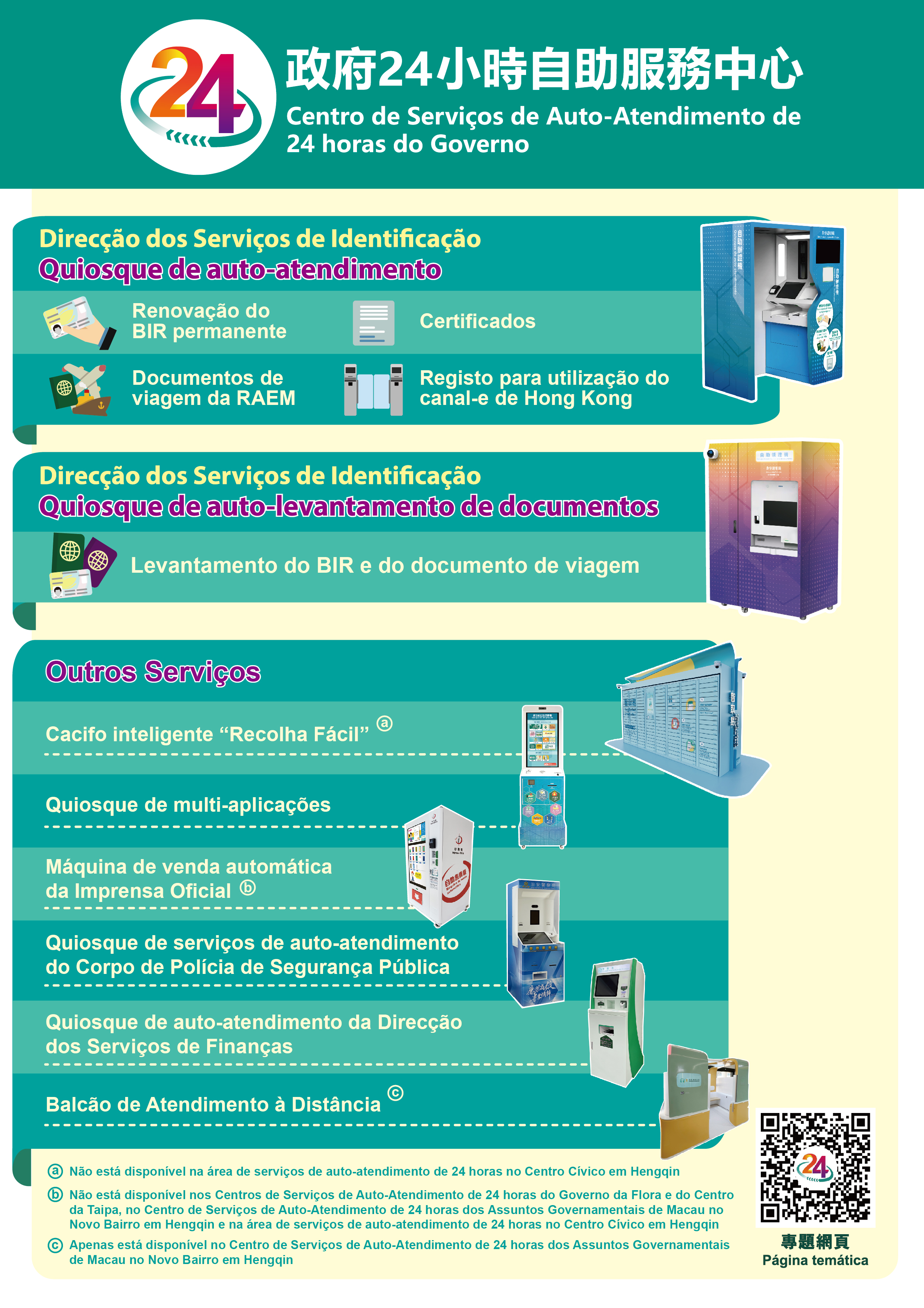 O Centro de Serviços de Auto-Atendimento de 24 horas do Governo na Rotunda de Carlos da Maia dispõe de quiosques de auto-atendimento, quiosques de auto-levantamento de documentos e quiosques de multi-aplicações da DSI, diversos quiosques automáticos do Corpo de Polícia de Segurança Pública, da Direcção dos Serviços de Finanças e da Imprensa Oficial, assim como cacifos inteligentes “Recolha fácil” para os residentes de Macau poderem levantar por si próprios os documentos do Governo.