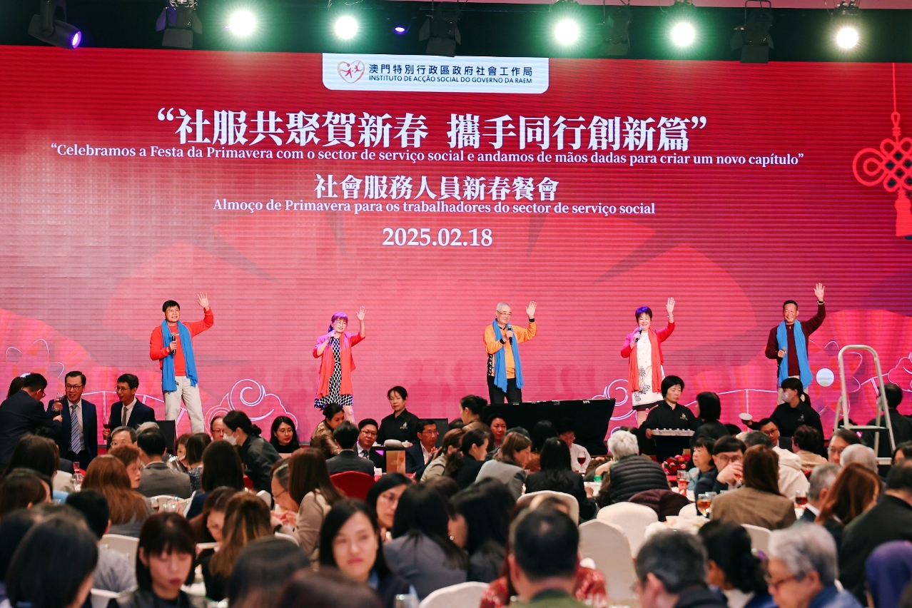 O Instituto de Acção Social (IAS) realizou, hoje (18 de Fevereiro), no Centro de Convenções e Exposições da Doca dos Pescadores de Macau, o Almoço de Primavera para os trabalhadores do sector de serviço social 2025 “Celebramos a Festa da Primavera com o sector de serviço social e andamos de mãos dadas para criar um novo capítulo”, no qual se reuniram cerca de 600 representantes das IPSS e participantes dos sectores da sociedade por ocasião das celebrações do ano novo lunar.