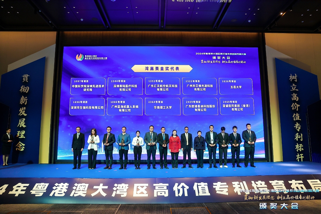 O Concurso de 2024 é subordinado ao tema “Implementar o conceito de desenvolvimento novo e estabelecer o padrão de patente de alto valor” e é organizado conjuntamente pela Administração de Regulação do Mercado da Província de Guangdong, pelo Governo Popular do Município de Jiangmen, pelo Departamento da Propriedade Intelectual do Governo da RAEHK e pela DSEDT do Governo da RAEM. O Concurso de 2024 atraiu, desde o seu arranque, em Agosto de 2024, a participação activa dos sujeitos inovadores provenientes do Interior da China, Hong Kong e Macau, tendo sido recebido um número recorde de 1660 de projectos. Após a selecção e avaliação nas fases preliminar e semifinal, três projectos de Macau foram seleccionados na lista dos 200 melhores projectos para a semifinal do concurso, e dois destes três para também a final do concurso. Finalmente, foram atribuídos um prémio de ouro e um de prata à equipa de Macau.