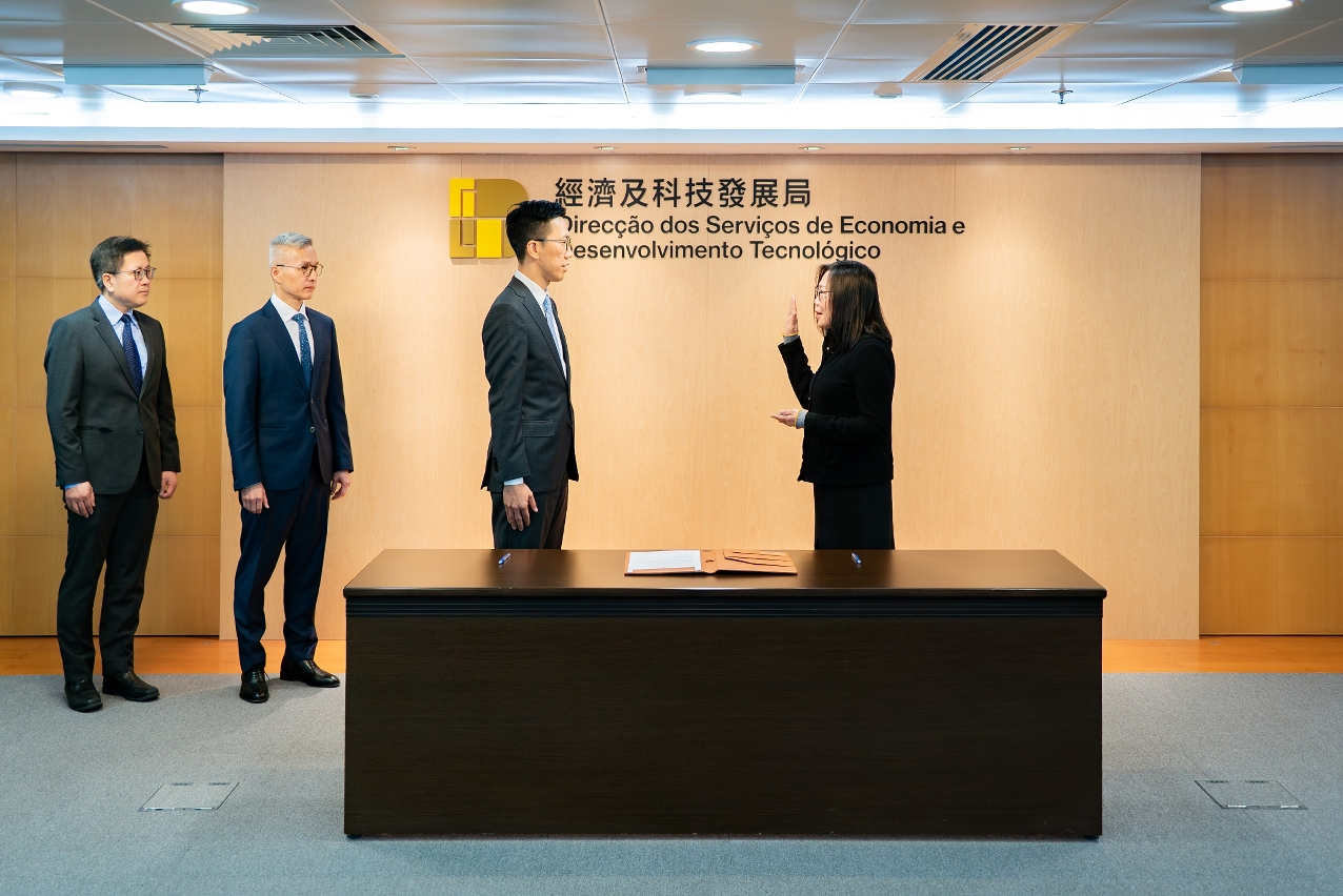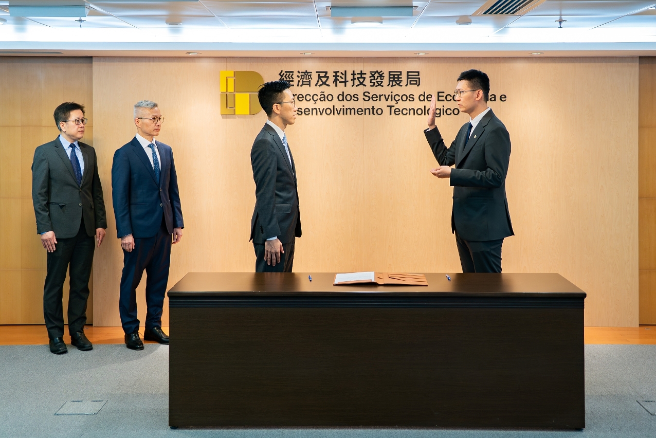 Realizou-se hoje (dia 19), na sede da Direcção dos Serviços de Economia e Desenvolvimento Tecnológico (DSEDT), a cerimónia de tomada de posse dos subdirectores da DSEDT, Cheang Hio Man e Chan Chou Weng, que foi presidida pelo director da DSEDT, Yau Yun Wah, e testemunhada pelo Secretário para a Economia e Finanças, Tai Kin Ip e pelo chefe do Gabinete do Secretário para a Economia e Finanças, Lo Chi Fai.