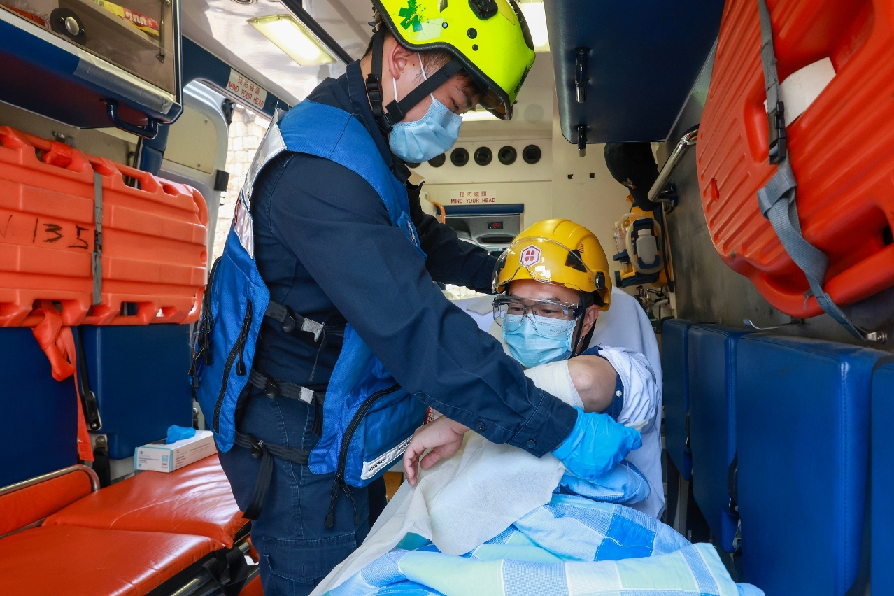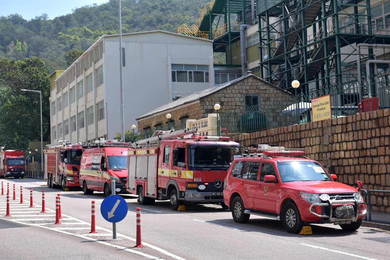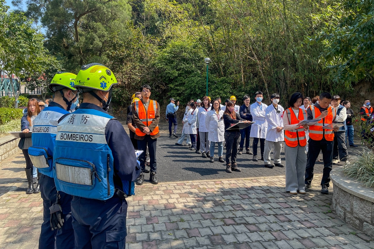 Depois do alarme, o CB enviou imediatamente 9 veículos de emergência e 39 bombeiros para acorrerem ao local, com vista a combater o fogo, desenvolver as acções de evacuação, busca e salvamento conforme o plano de socorro estabelecido, realizar a enfermagem imediata junto dos feridos e simular o transporte para o hospital para o tratamento.