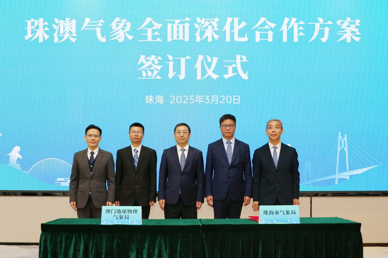 Com o objetivo de aprofundar e promover o desenvolvimento sinérgico dos serviços meteorológicos entre Macau e Zhuhai, o Director da Direcção dos Serviços Meteorológicos e Geofísicos (DSMG), Sr. Leong Weng Kun, e o Director do Zhuhai Meteorological Bureau, Sr. Zhao Yongli, assinaram, no dia 20 de Março, o “Projecto de Cooperação Abrangente e Aprofundada no Âmbito de Meteorologia entre Zhuhai e Macau” em Zhuhai, e marcaram, uma nova etapa de cooperação e desenvolvimento abrangente.