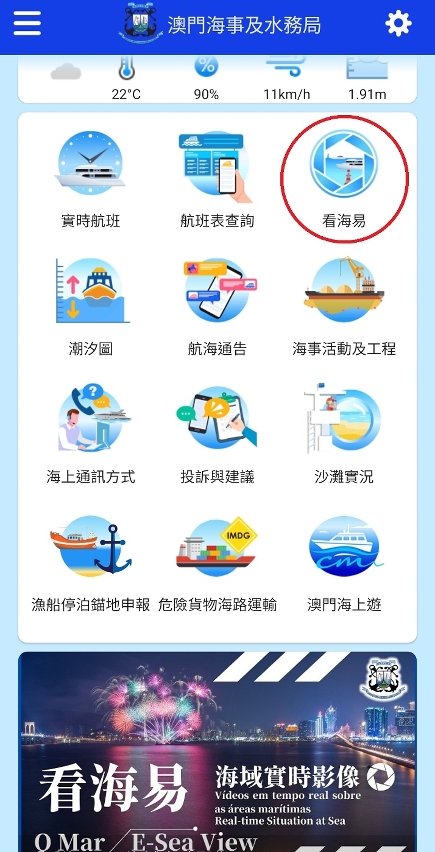 As câmaras ao vivo do mar são instrumentos importantes para a gestão e monitorização das áreas marítimas por parte da Direcção dos Serviços de Assuntos Marítimos e de Água (DSAMA). Para reforçar a monitorização das áreas marítimas de Macau e permitir que o público conheça melhor o ponto de situação das áreas marítimas de Macau, a DSAMA concluiu a actualização do “Mar”, disponibilizando ao público mais visões em tempo real do mar. A partir de hoje, o público pode observar o ponto de situação em tempo real das áreas marítimas de Macau através de diferentes ângulos e apreciar a paisagem única de Macau utilizando a função “Mar” na página electrónica da DSAMA (https://www.marine.gov.mo) e na aplicação do telemóvel “Informação Marítima de Macau”.