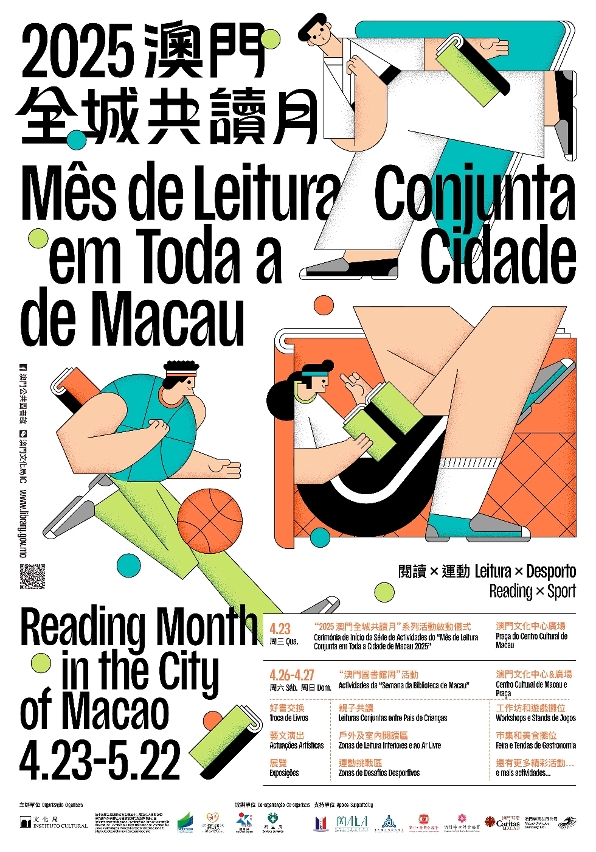 No âmbito do “Dia Mundial do Livro”, que será celebrado no dia 23 de Abril, o evento “Mês de Leitura Conjunta em Toda a Cidade de Macau 2025”, organizado pelo Instituto Cultural (IC), em conjunto com o Gabinete Preparatório para a Organização da Zona de Competição de Macau da 15.ª edição dos Jogos Nacionais e da 12.ª edição dos Jogos Nacionais para Pessoas Portadoras de Deficiência e 9.ª edição dos Jogos Olímpicos Especiais Nacionais, a Direcção dos Serviços de Educação e de Desenvolvimento da Juventude (DSEDJ) e o Instituto de Acção Social (IAS), terá lugar entre 23 de Abril e 22 de Maio, sendo realizadas mais de 100 actividades de leitura para promover a cultura de leitura junto do público e contribuir para a construção da “Cidade da Leitura”